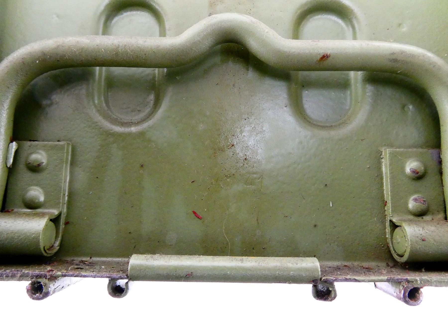 LOT INCLUDES; (1) BASKET CARRIER, GREEN PAINTED STEEL (POSTWAR YUGOSLAVIAN REPAINTED) WITH SOME GREASE & RUST, MARKED: "WC 41", APPROX. 12.25" X 5.75" X 5.5", (2) BASKET DRUMS, GREEN PAINTED BLUED STEEL, ONE MARKED: "DQU 43" / ONE MARKED: "WC 42". SEE PHOTOS. PAL REQUIRED.