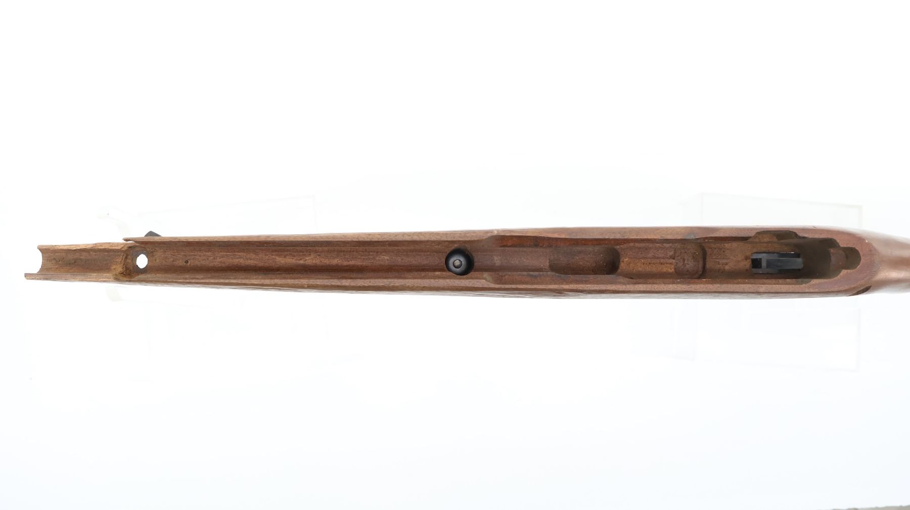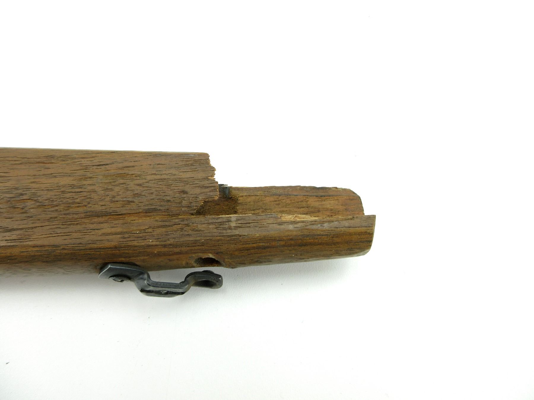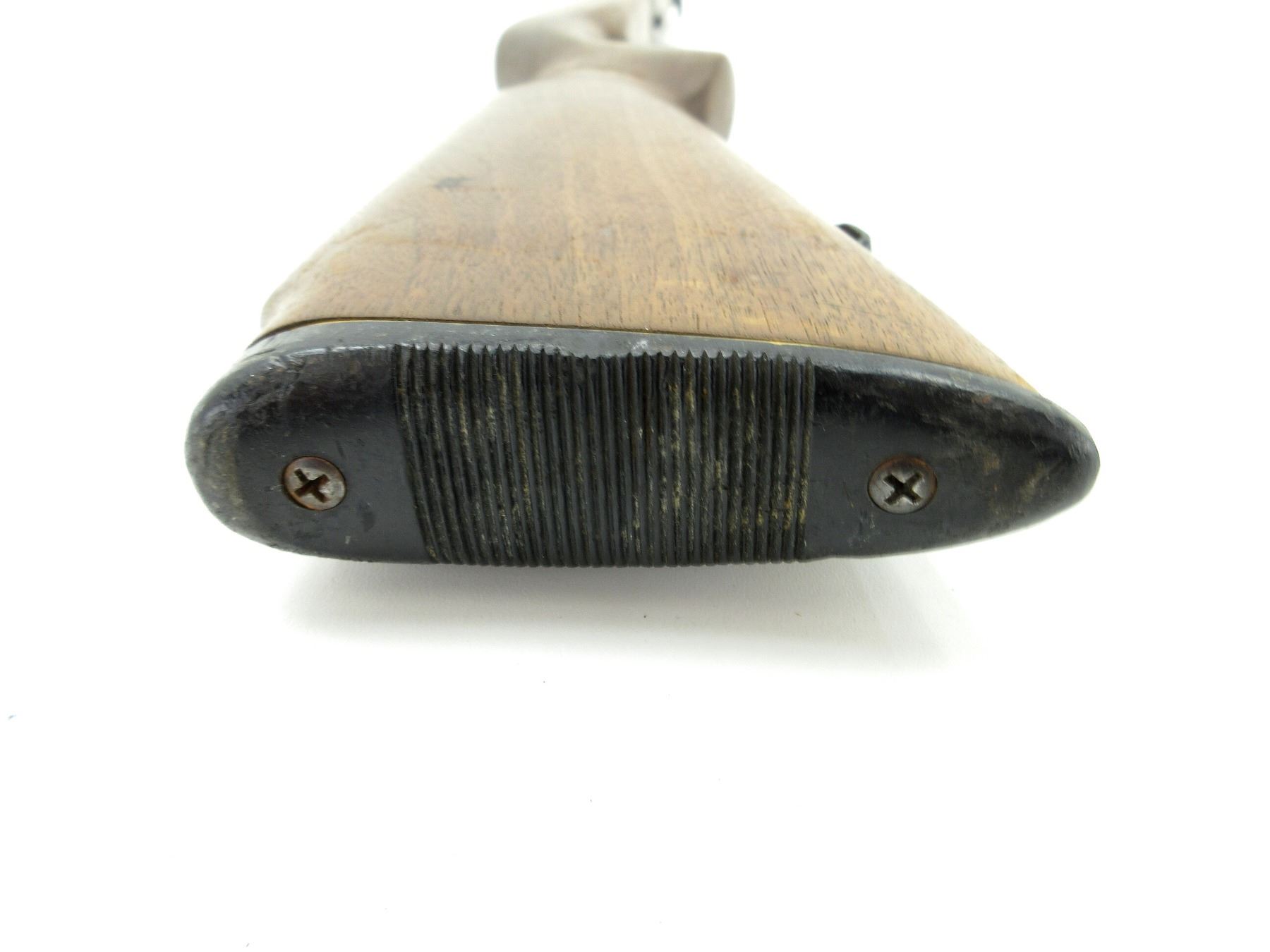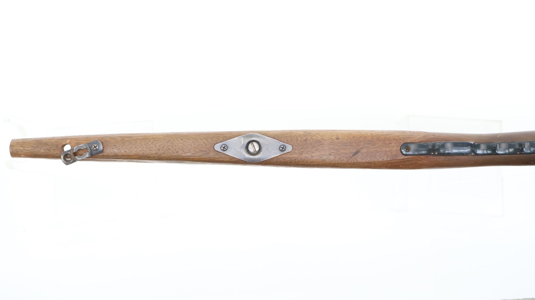 (1) WOODEN SMOOTH STOCK, BROKEN, WITH SWIVEL STUDS & BLACK GROOVED BUTT PLATE, UNMARKED, OVERALL LENGTH APPROX. 30.25". MAY REQUIRE FITTING. SEE PHOTOS.