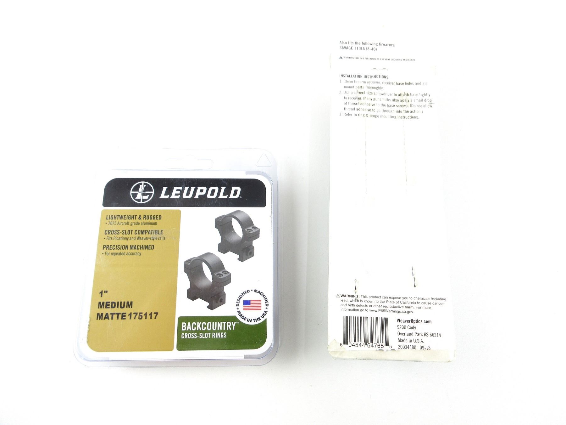 LOT INCLUDES; (1) SET OF 1" BACKCOUNTRY CROSS-SLOT SCOPE RINGS, BLACK MATTE ALUMINIUM, MEDIUM, PART #: 175117, APPEARS NEW OLD STOCK IN ORIGINAL PACKAGING & (1) SAVAGE 110 LONG ACTION (8-40) MULTI SLOT 619 BASE, MATTE BLACK ALUMINIUM CONSTRUCTION, PART #: 48344, APPEARS NEW OLD STOCK IN ORIGINAL PACKAGING. MAY REQUIRE FITTING. SEE PHOTOS.