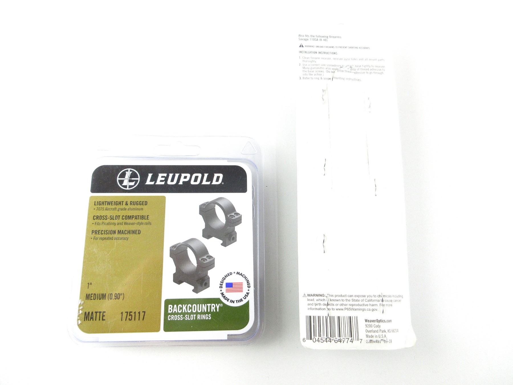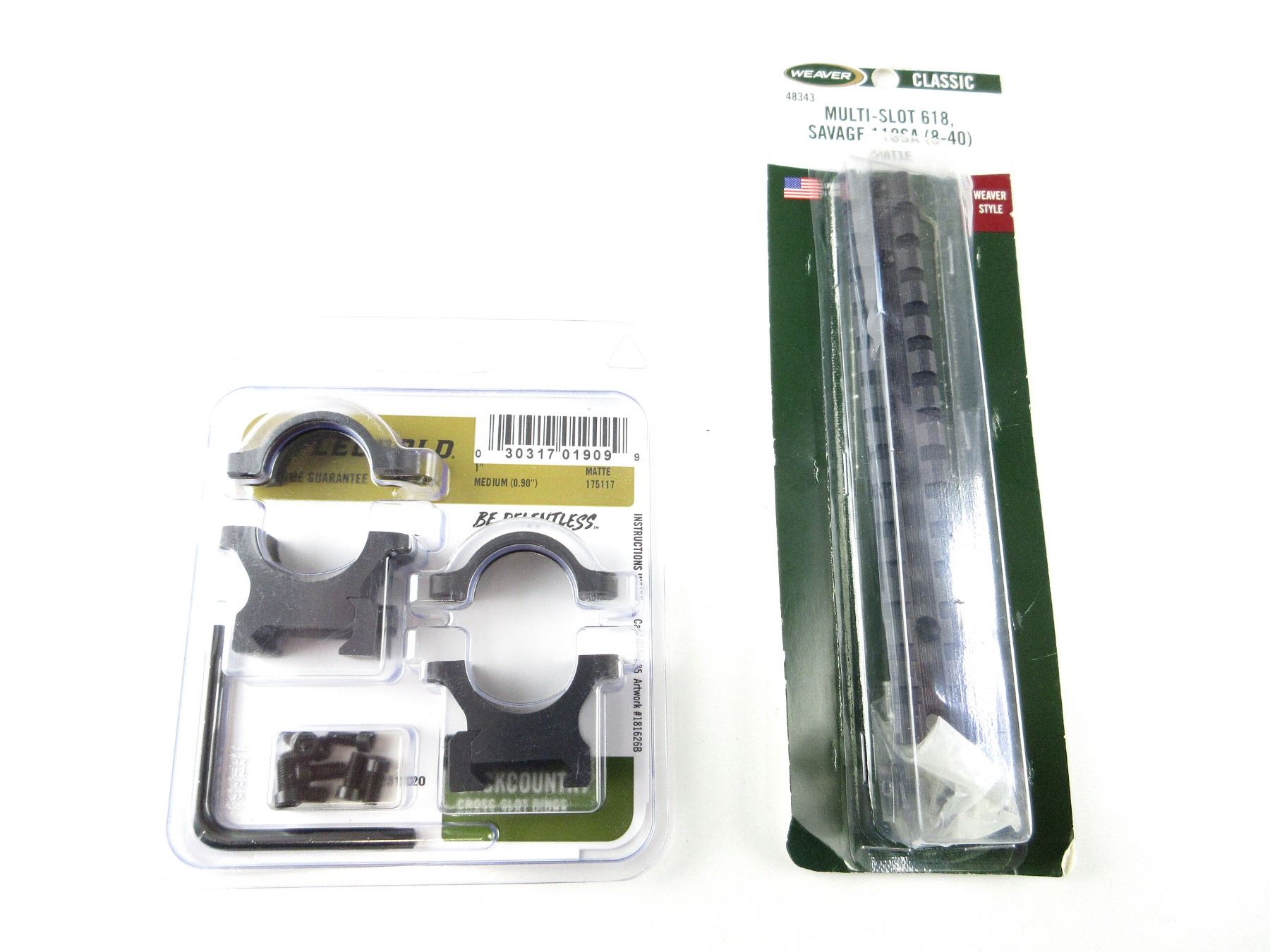 Lot 35186 LEUPOLD 1" SCOPE RINGS AND WEAVER SAVAGE 110 SHORT ACTION SCOPE BASE MOUNT LOT