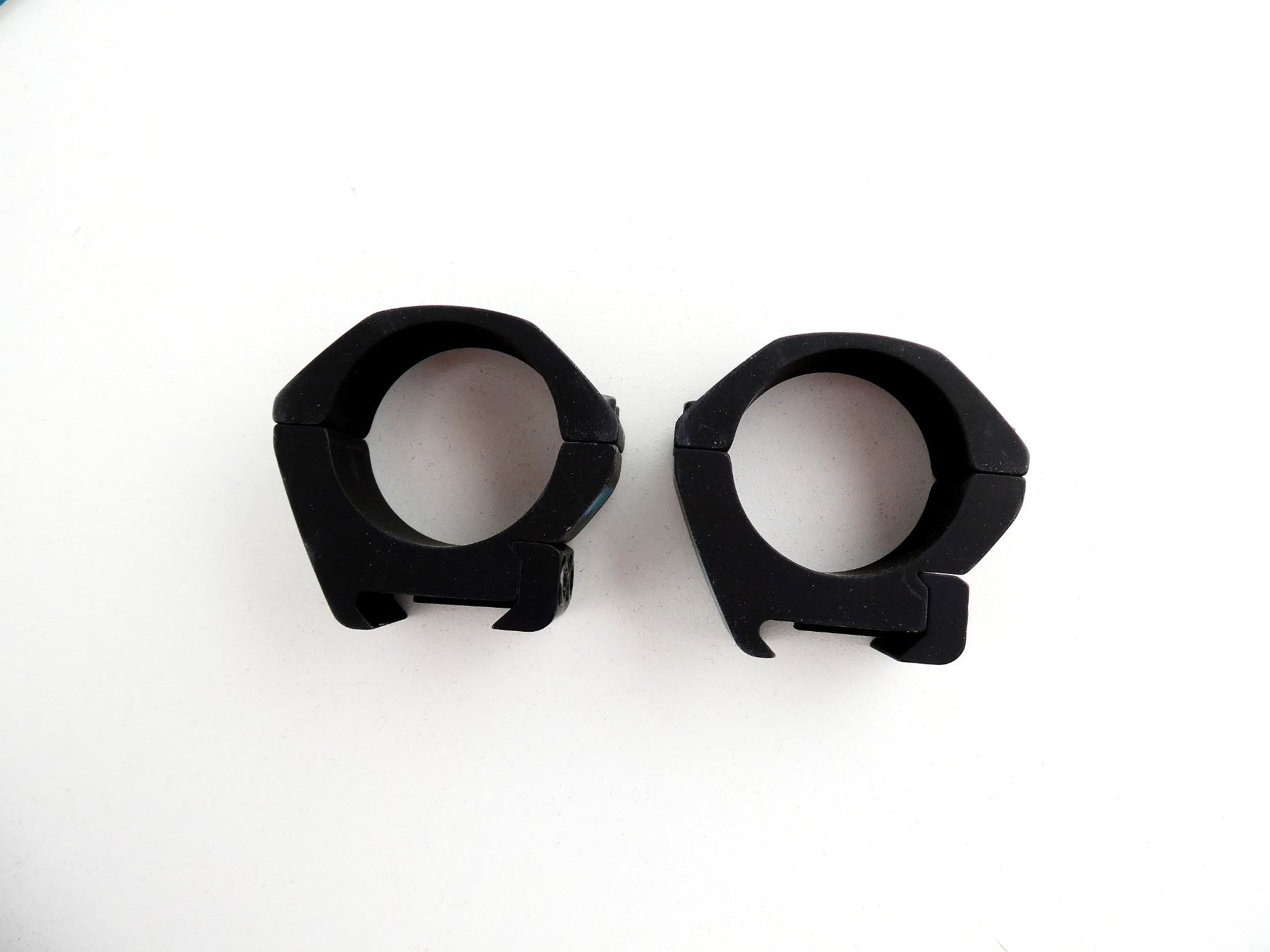 (1) SET OF 34MM SCOPE RINGS, BLACK ALUMINIUM, LOW, PART #: PR34-L, WITH INSTRUCTIONS & ORIGINAL PACKAGING. MAY REQUIRE FITTING. SEE PHOTOS.