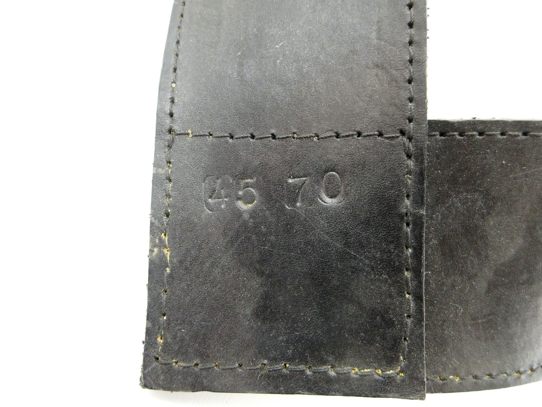 (1) BLACK LEATHER BANDOLIER, HOLDS 60 RNDS, MARKED: "45 70". SEE PHOTOS.