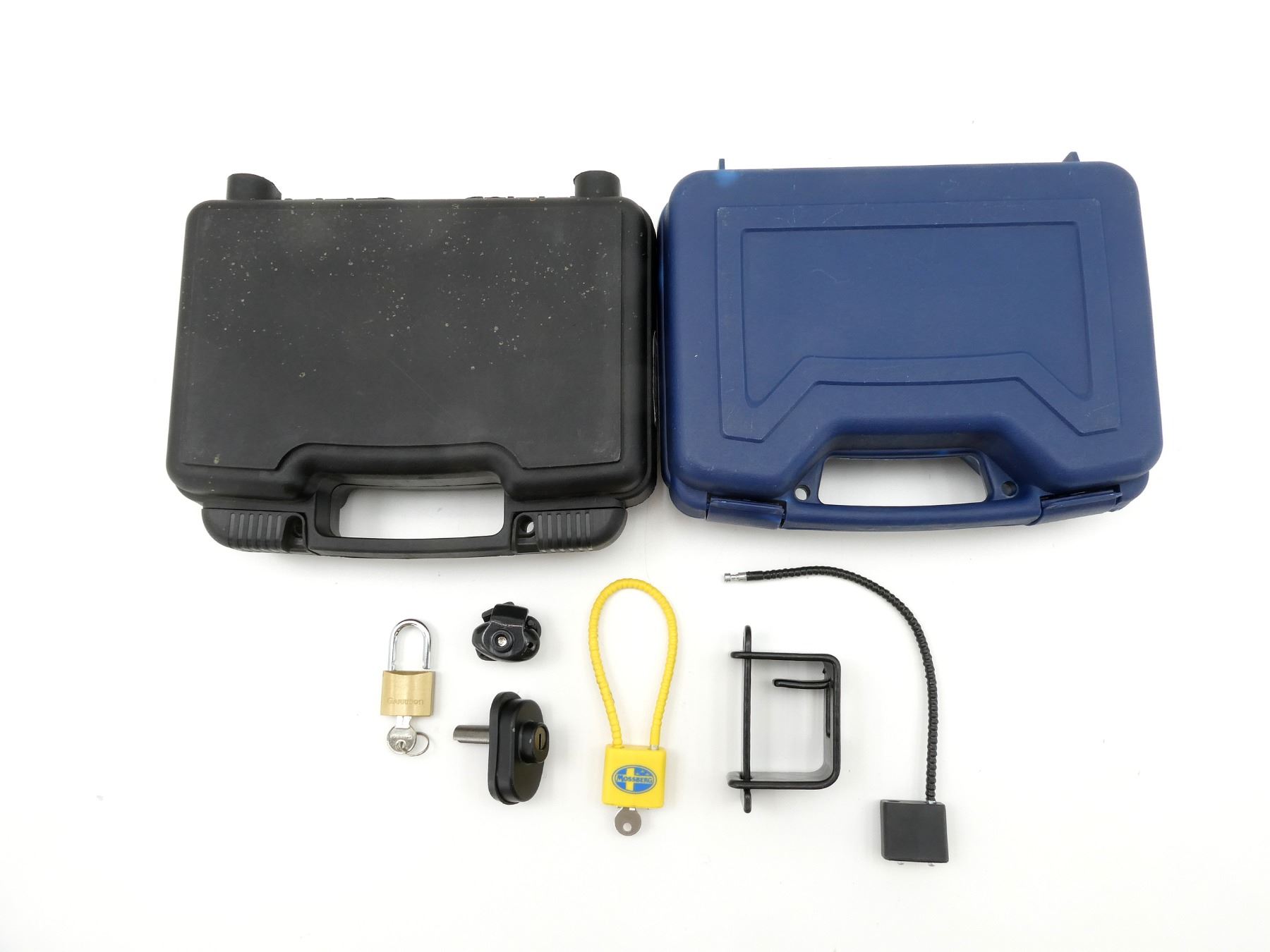 ASSORTED TRIGGER LOCKS AND HARD HANDGUN CASE LOT