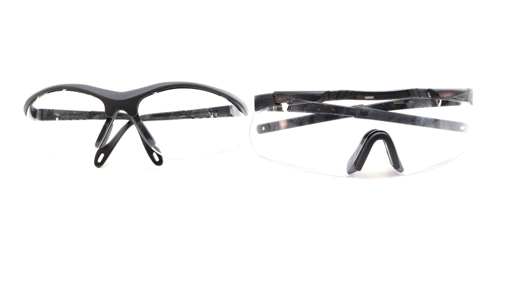 LOT INCLUDES; (1) EARMOR OVER-THE-EAR ELECTRONIC HEARING PROTECTION, BLACK, UNTESTED & (2) SETS OF SAFETY GLASSES, ONE SET WITH CASE. SEE PHOTOS.
