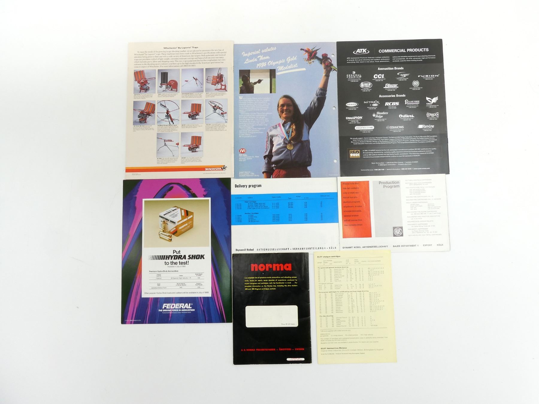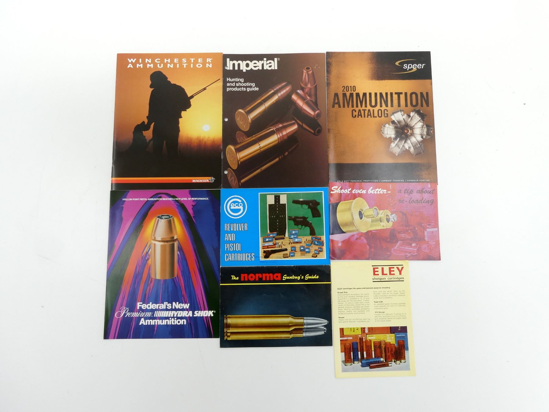 LOT INCLUDES; (1) "SHOOT EVEN BETTER - A TIP ABOUT RE-LOADING", SOFT COVER, (1) "THE NORMA GUNBUG'S GUIDE", SOFT COVER, (1) "FEDERAL'S NEW PREMIUM HYDRA SHOK AMMUNITION", SOFT COVER, (1) "2010 AMMUNITION CATALOG", SOFT COVER, (1) "IMPERIAL HUNTING AND SHOOTING PRODUCTS GUIDE", SOFT COVER & (1) "WINCHESTER AMMUNITION", SOFT COVER, ETC. SEE PHOTOS.