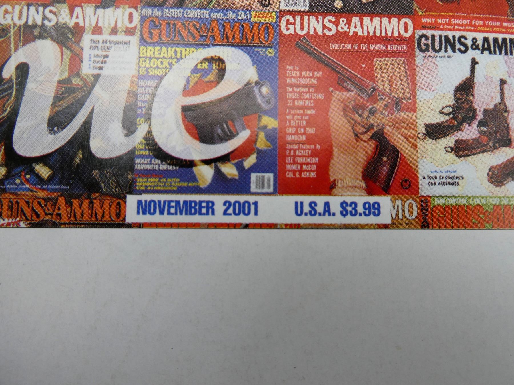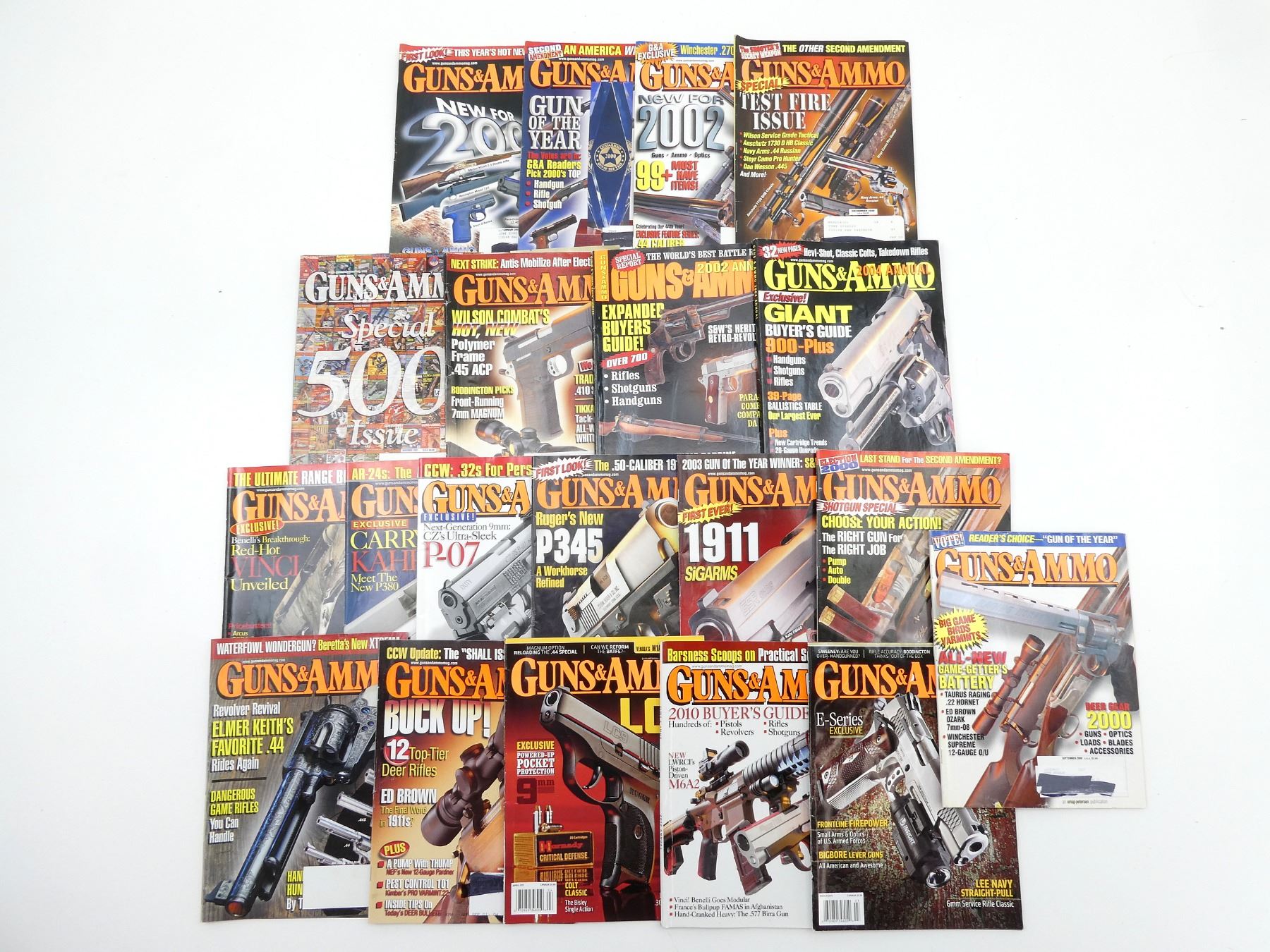 LOT INCLUDES; APPROX. (20) "GUNS & AMMO" MAGAZINES, SOFT COVERS, ASSORTED DATES, SERIES NOT COMPLETE / SOME ISSUES MISSING / MAY CONTAIN DUPLICATES. SEE PHOTOS.