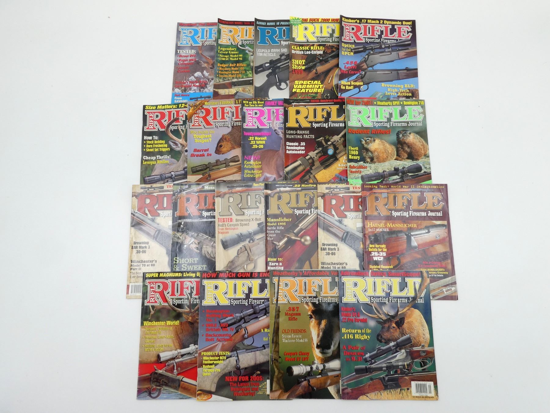 LOT INCLUDES; APPROX. (20) "RIFLE: SPORTING FIREARMS JOURNAL" MAGAZINES, SOFT COVERS, ASSORTED DATES, SERIES NOT COMPLETE / SOME ISSUES MISSING / MAY CONTAIN DUPLICATES. SEE PHOTOS.