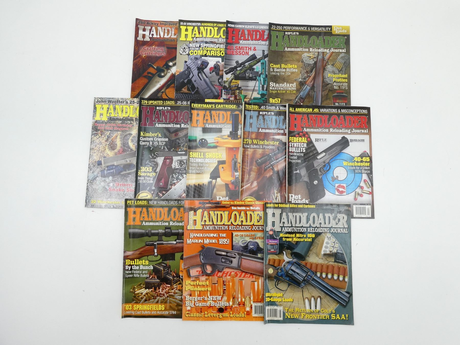 LOT INCLUDES; APPROX. (12) "HANDLOADER: AMMUNITION RELOADING JOURNAL" MAGAZINES, SOFT COVERS, ASSORTED DATES, SERIES NOT COMPLETE / SOME ISSUES MISSING / MAY CONTAIN DUPLICATES. SEE PHOTOS.