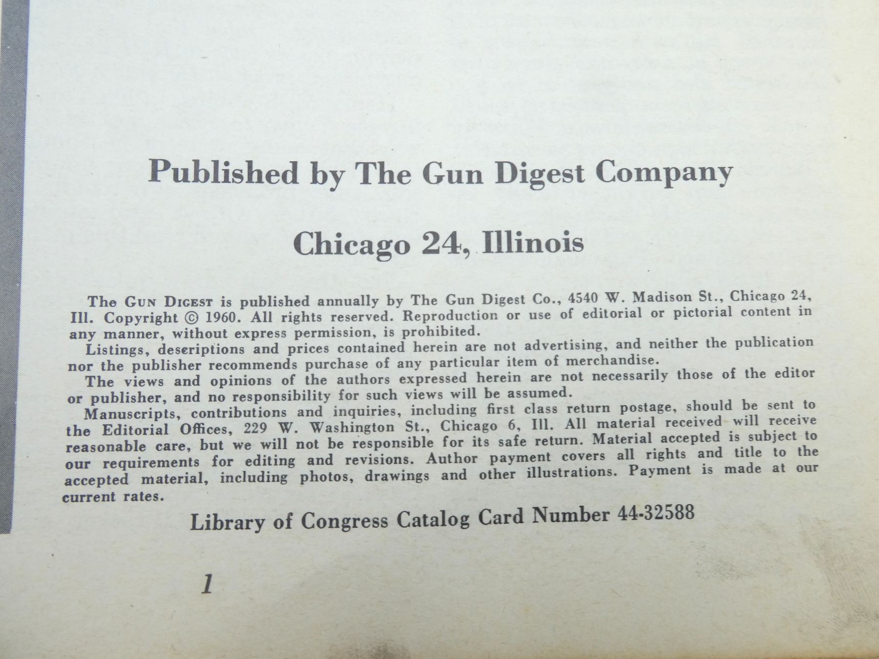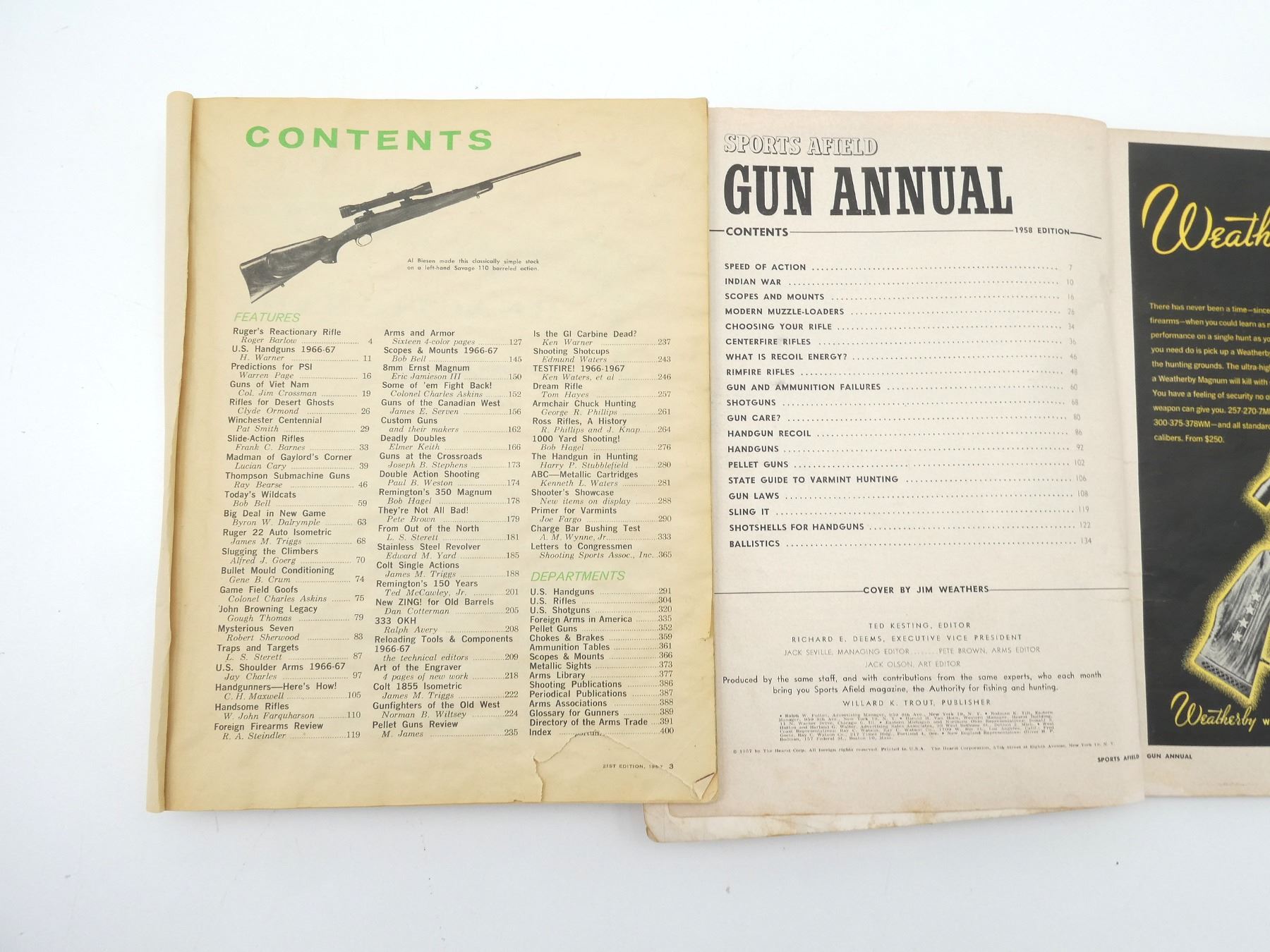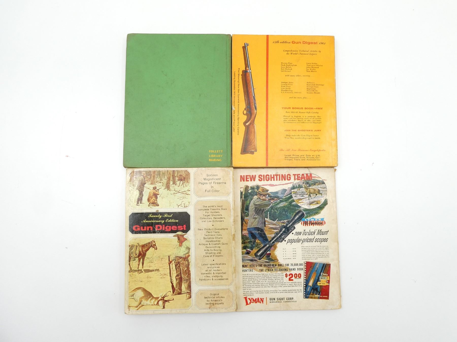 LOT INCLUDES; (3) "GUN DIGEST" CATALOGUES, 1957-1967, 2 SOFT COVERS / 1 HARD COVER, SERIES NOT COMPLETE / SOME ISSUES MISSING / MAY CONTAIN DUPLICATES & (1) "GUN ANNUAL", 1958 EDITION, SOFT COVER. SEE PHOTOS.