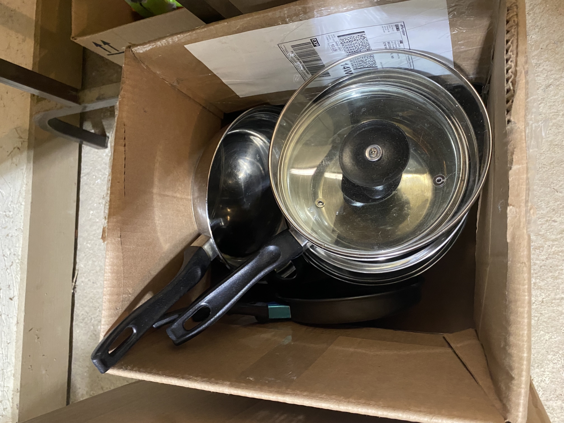 Lot 36 BOX LOT OF ASSORTED POTS AND PANS