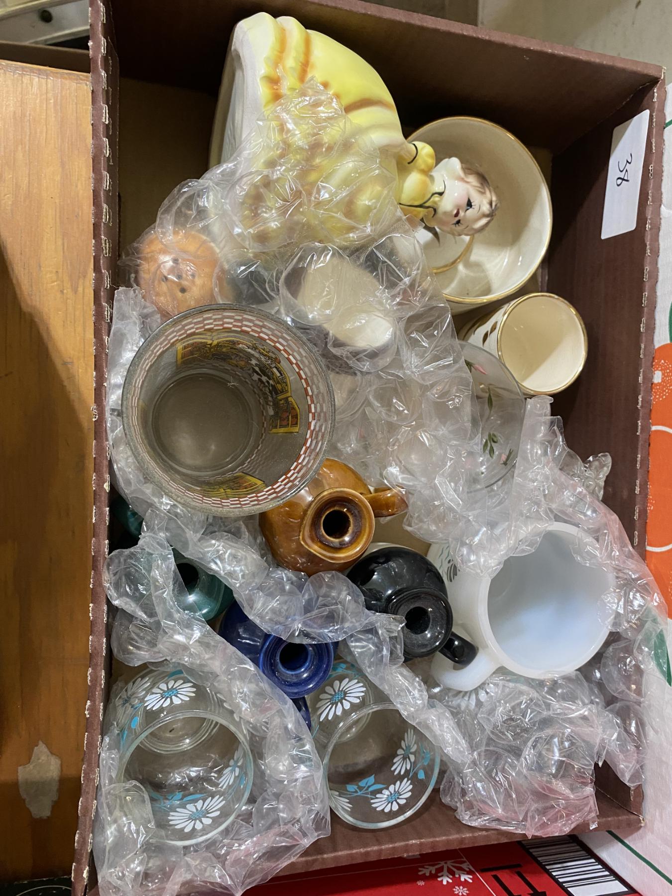 Lot 38 BOX LOT OF ASSORTED GLASS PCS AND A FEW CUPS