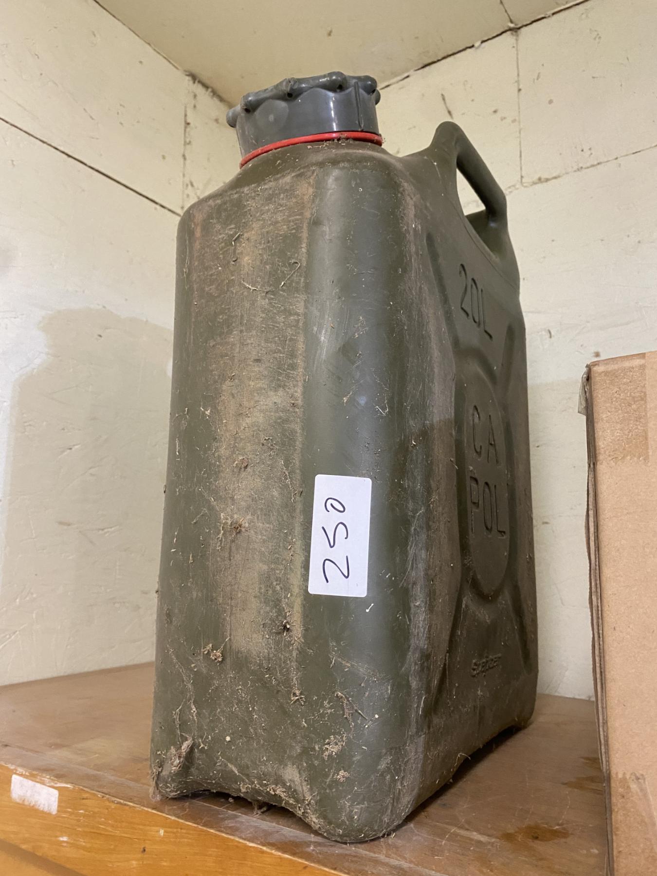 Lot 250 PLASTIC 20 L ARMY GAS CAN