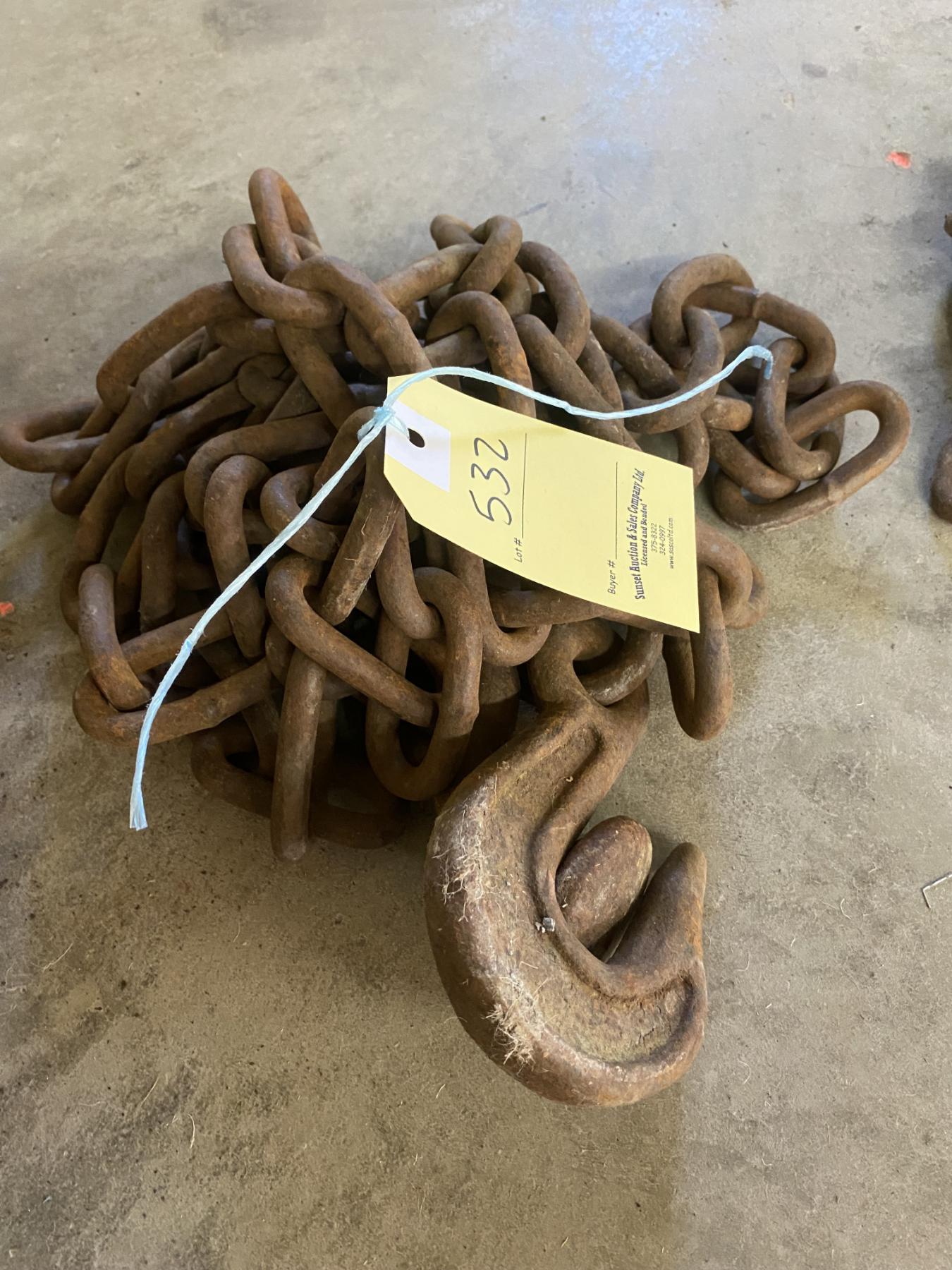 Lot 532 APPROX. 10 FT 1/2 INCH CHAIN WITH 1 HOOK