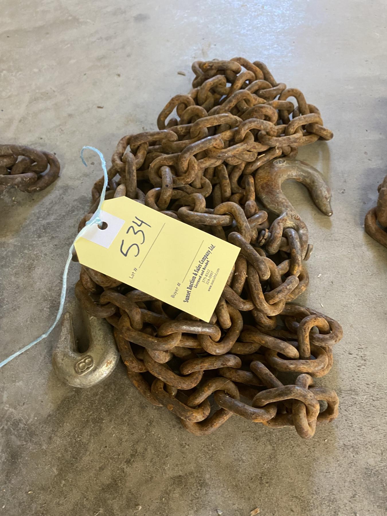 Lot 534 APPROX. 20 FT 9/16 INCH CHAIN WITH 2 HOOKS