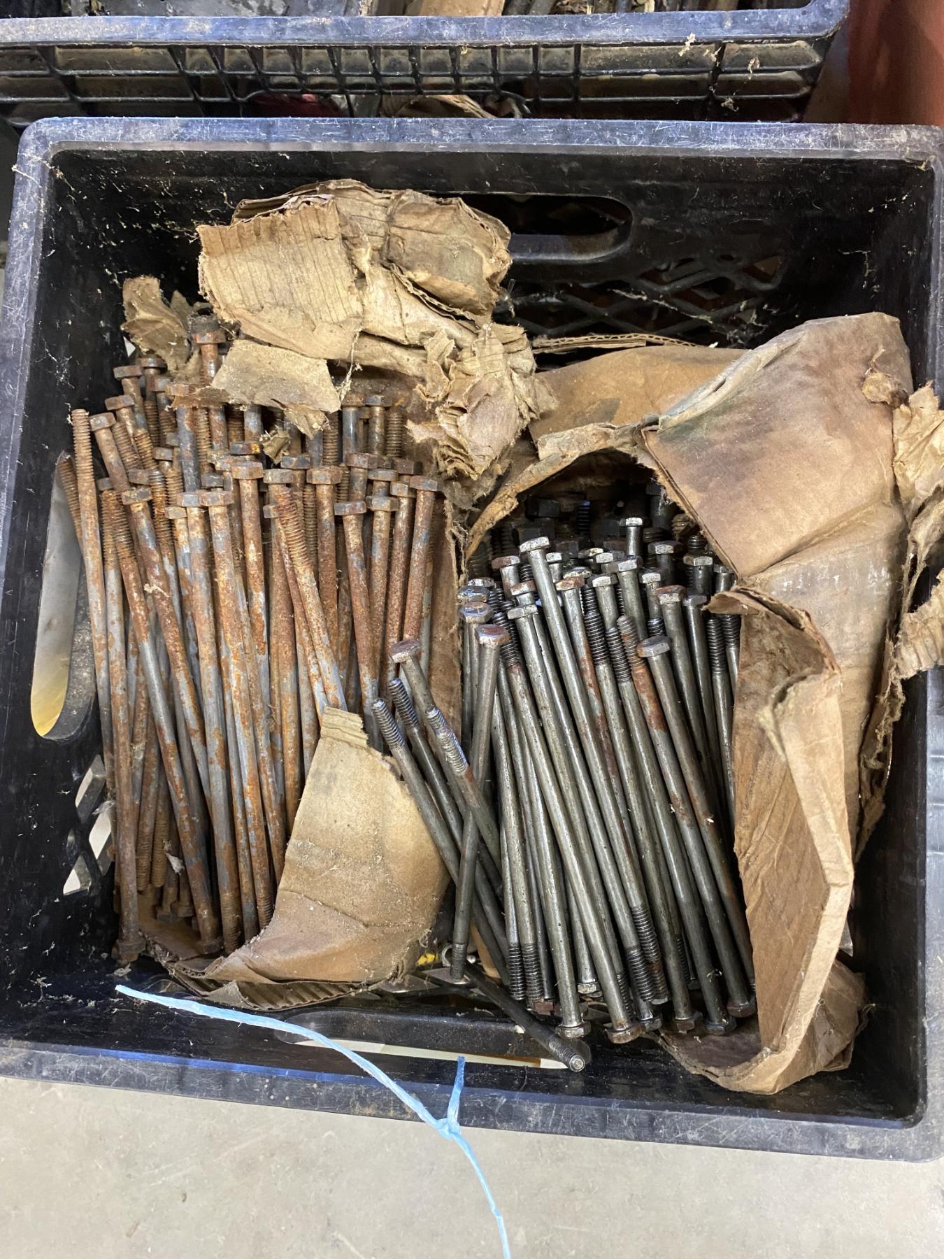 Lot 543 CRATE OF 6 INCH AND UP SIZE BOLTS - 1/4 UP TO 1/2 INCH ASSORTED