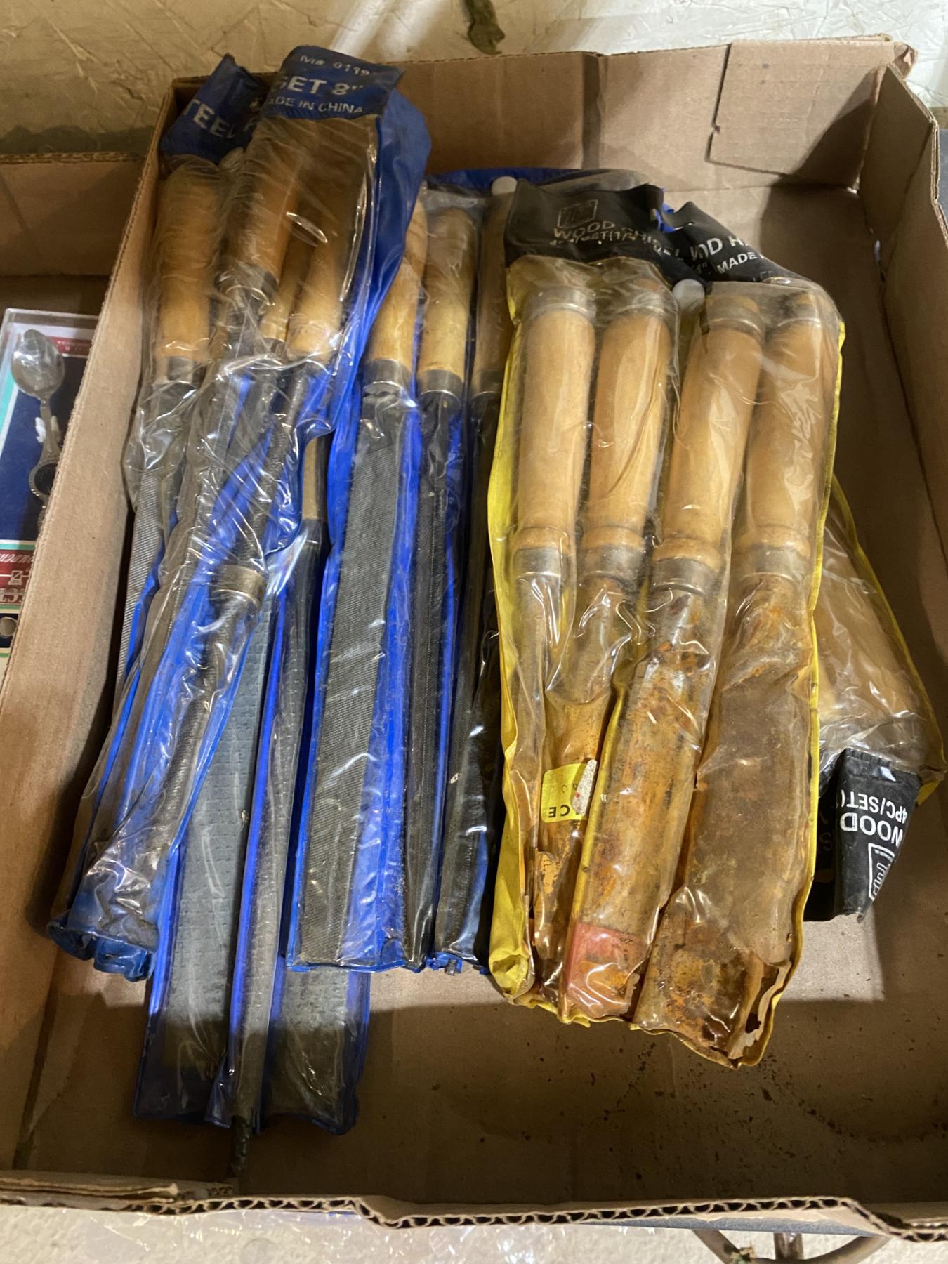 Lot 336 BOX OF ASSORTED FILES AND WOOD CHISELS