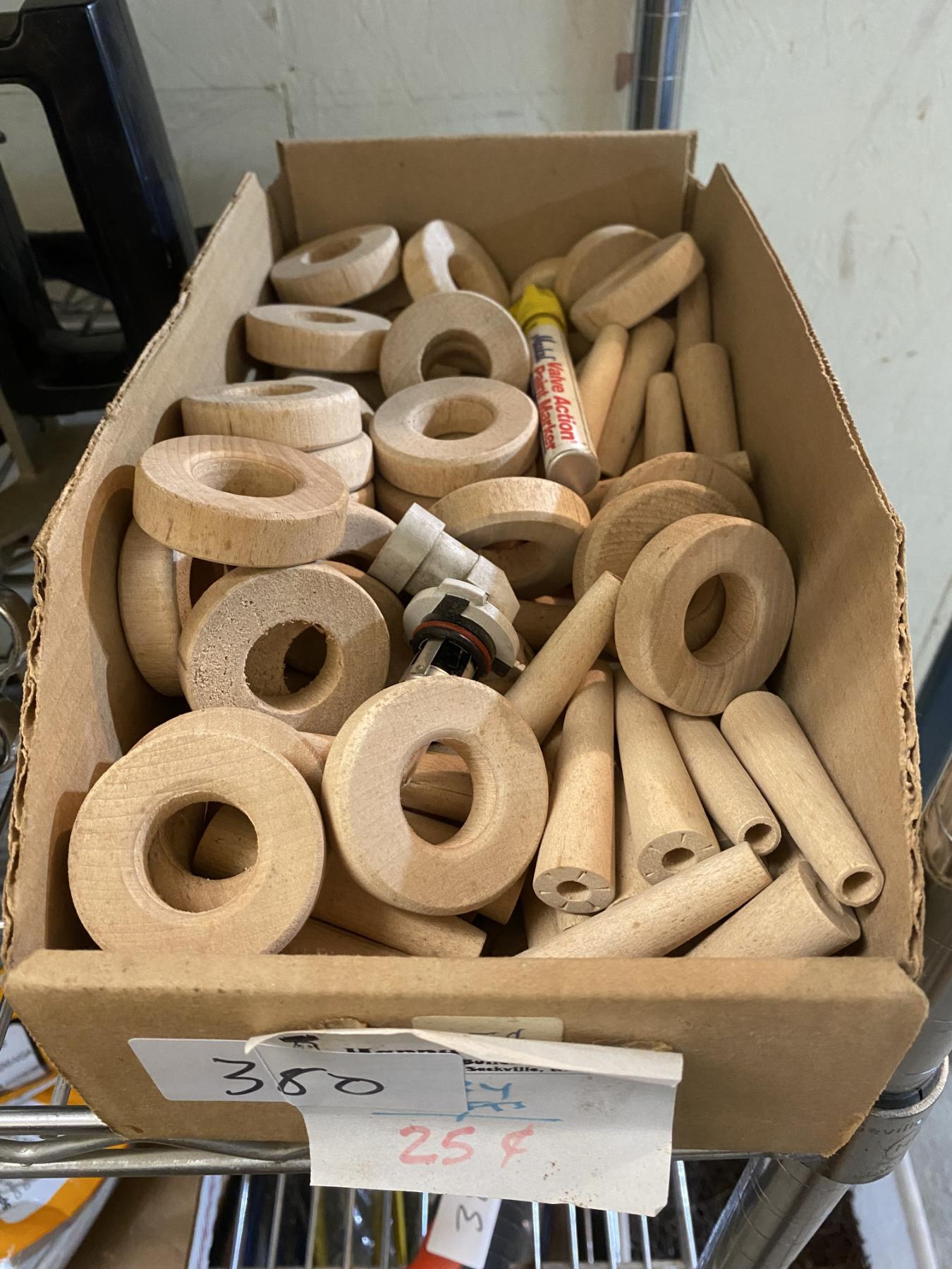 Lot 380 BOX OF WOODEN WHEELS - 1-3/4 X 1/2 INCH WITH 7/8 INCH HOLE