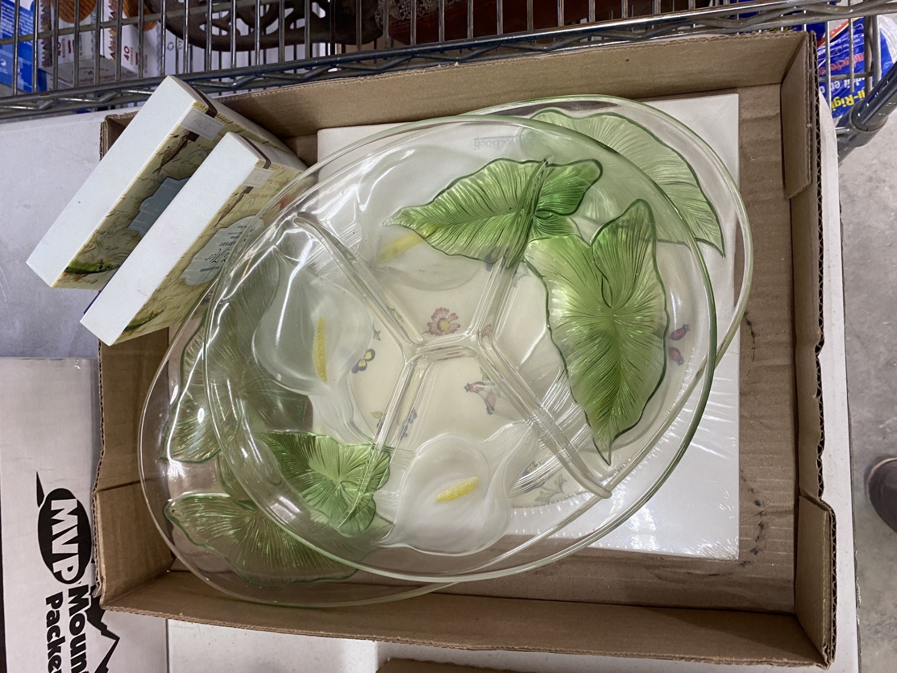 Lot 571 2 GLASS TRAYS AND 2 SET OF 4 CASTORS