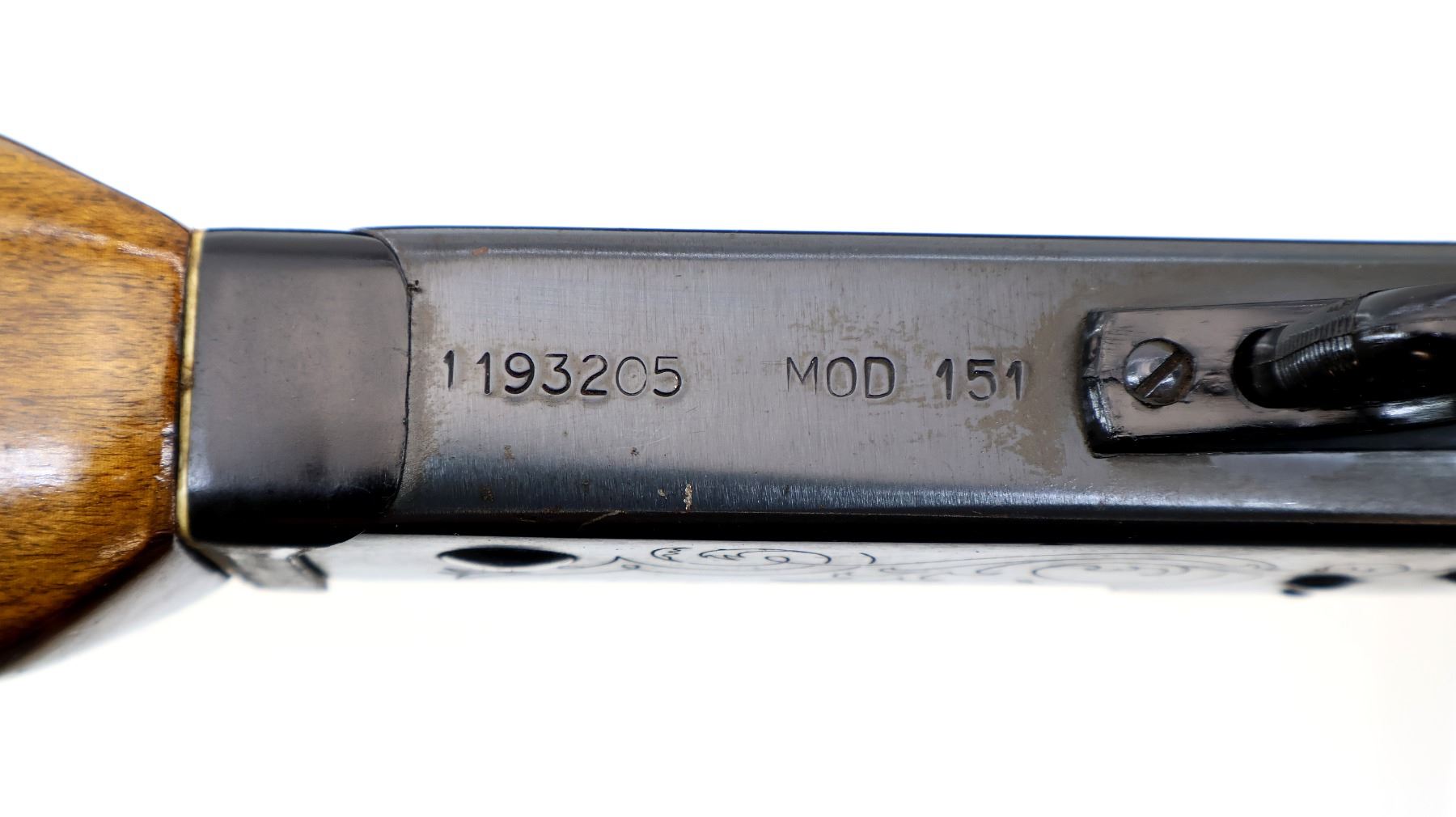 Wear: Metal finish shows some light rust speckles, scratches, handling marks and wear. Stocks show some marks, scratches and wear.