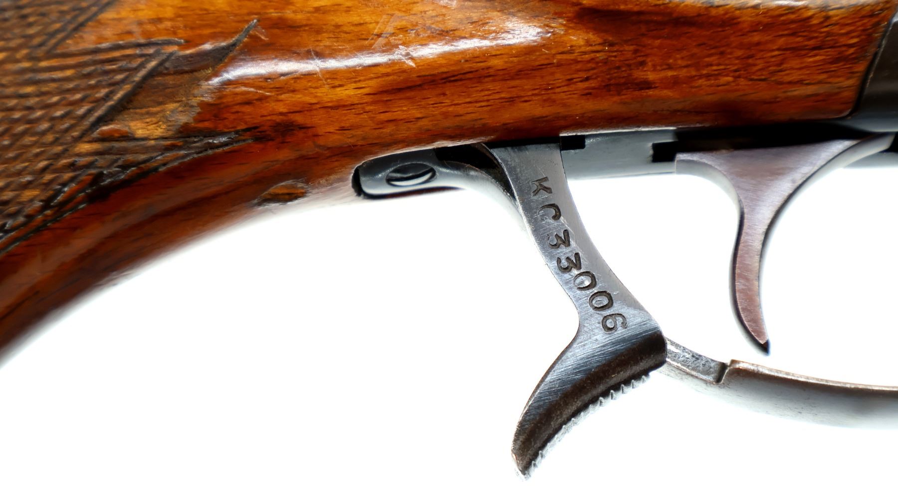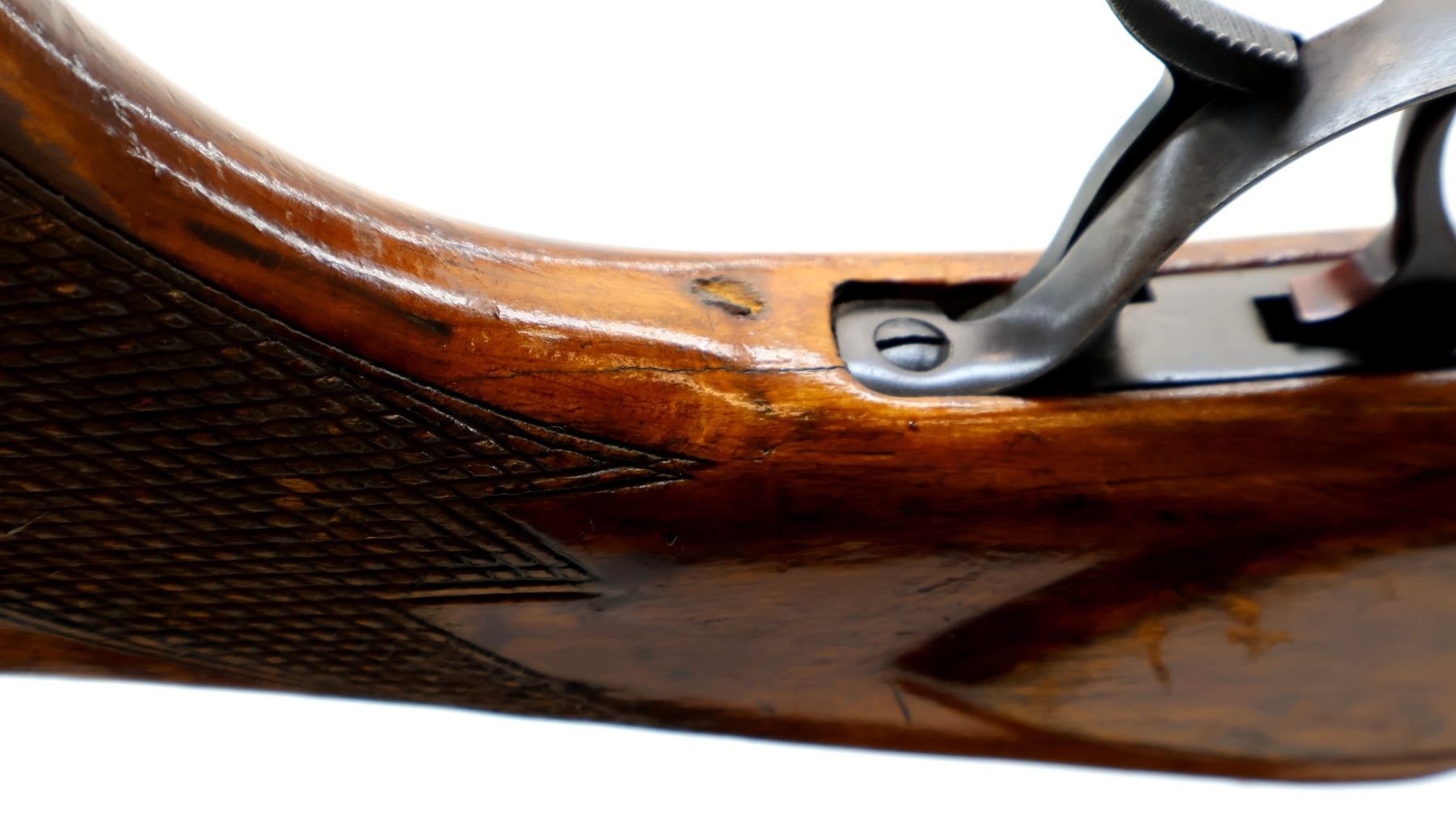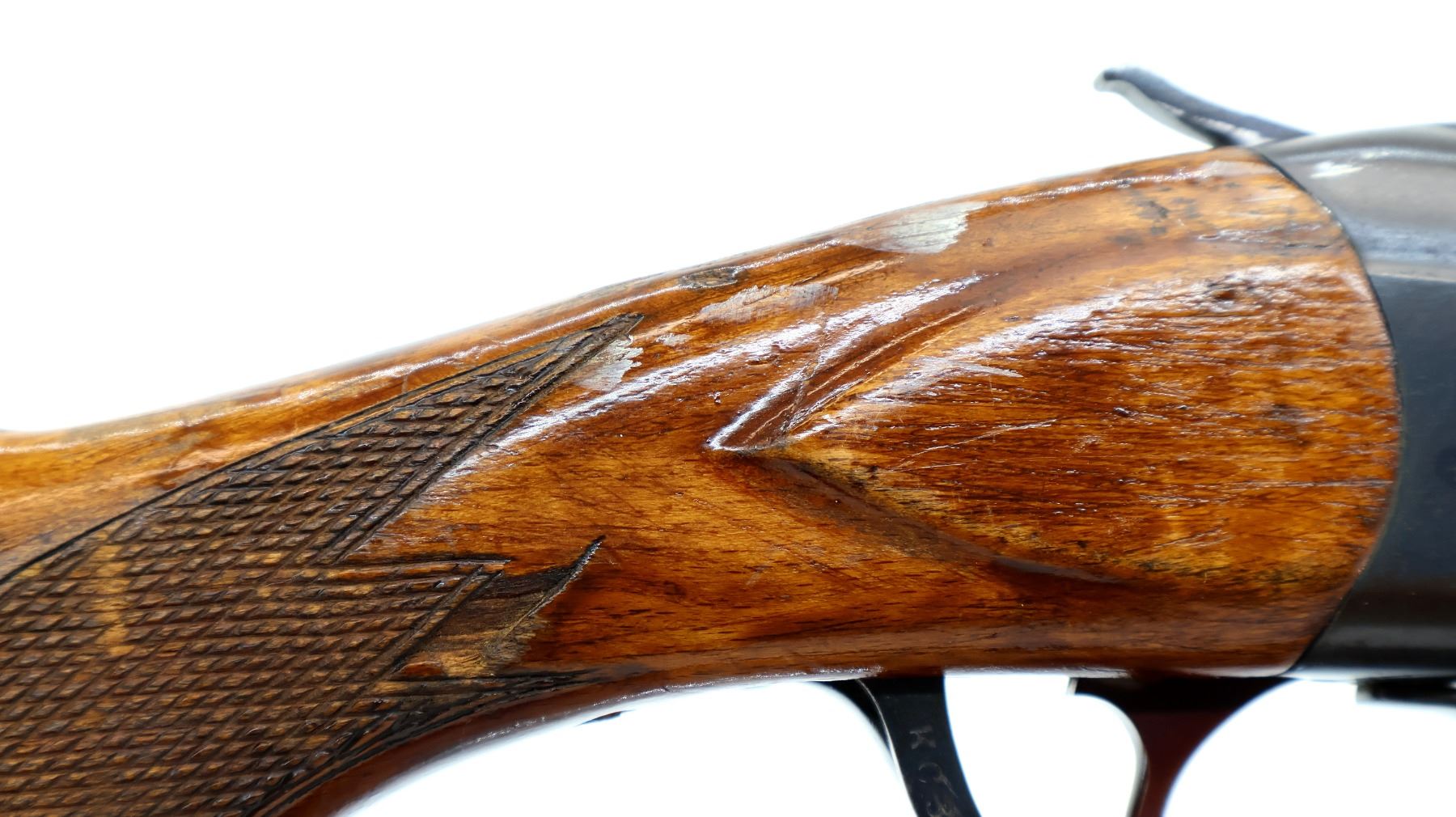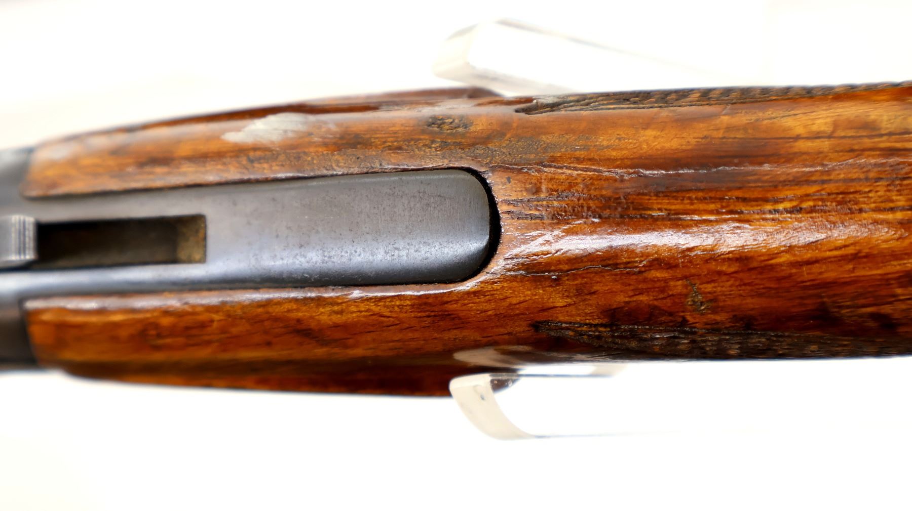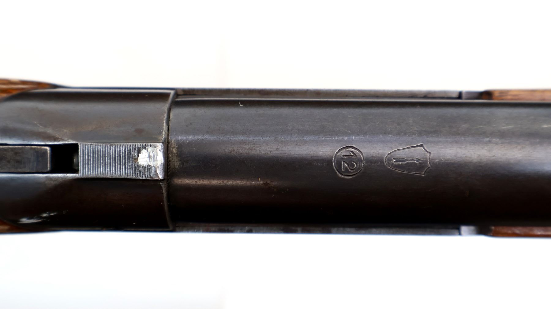 Wear: Metal finish shows some light rust speckles, scratches, handling marks and wear. Stocks show some marks, scratches and wear.