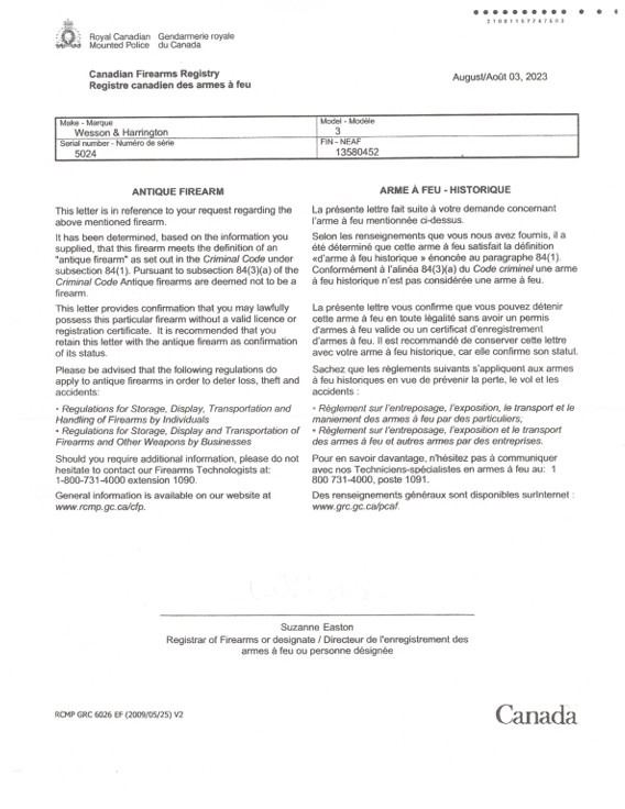 Class: Canadian Antique, No PAL Required