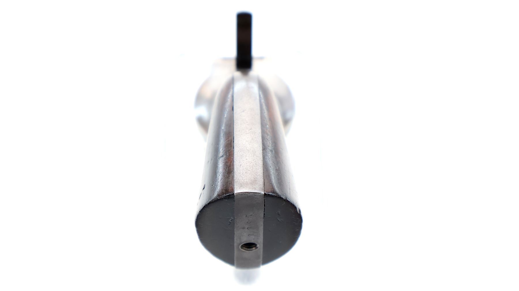 Main Description: Functions mechanically as designed. Blade front sight, fixed u notched rear sight, octagon barrel, smooth cylinder, checkered spur hammer and smooth trigger. Two piece smooth wood grips, missing lanyard on bottom of frame.