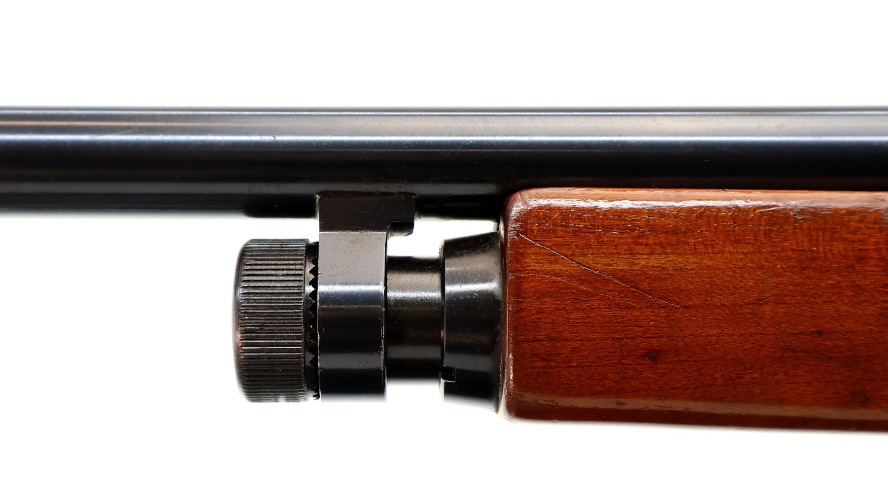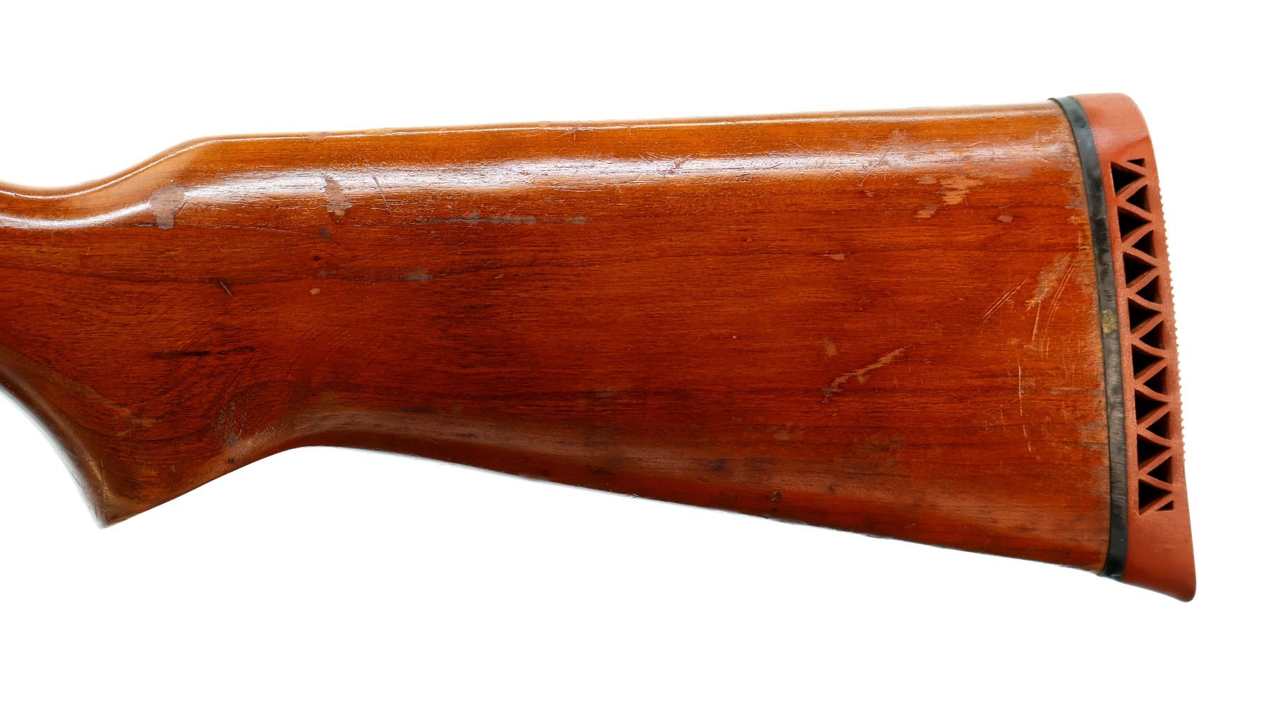 Main Description: Brass bead, blued round barrel, black alloy receiver. Two piece wood stocks, pistol grip, red vented rubber recoil pad.
