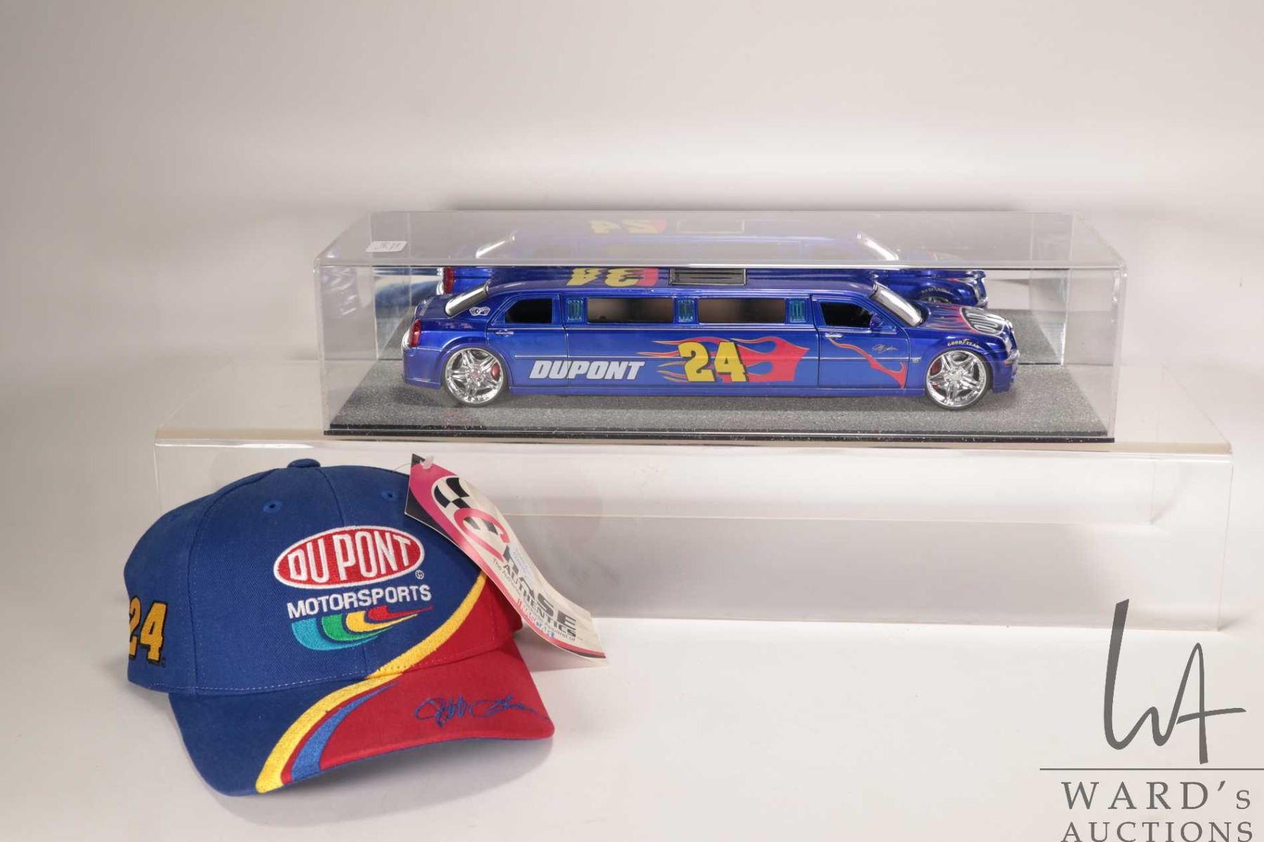 Jeff Gordon 1: 24 scale Chrysler 3000 custom limo by Maisto, in acrylic display plus a Du Pont Motorsport ball cap