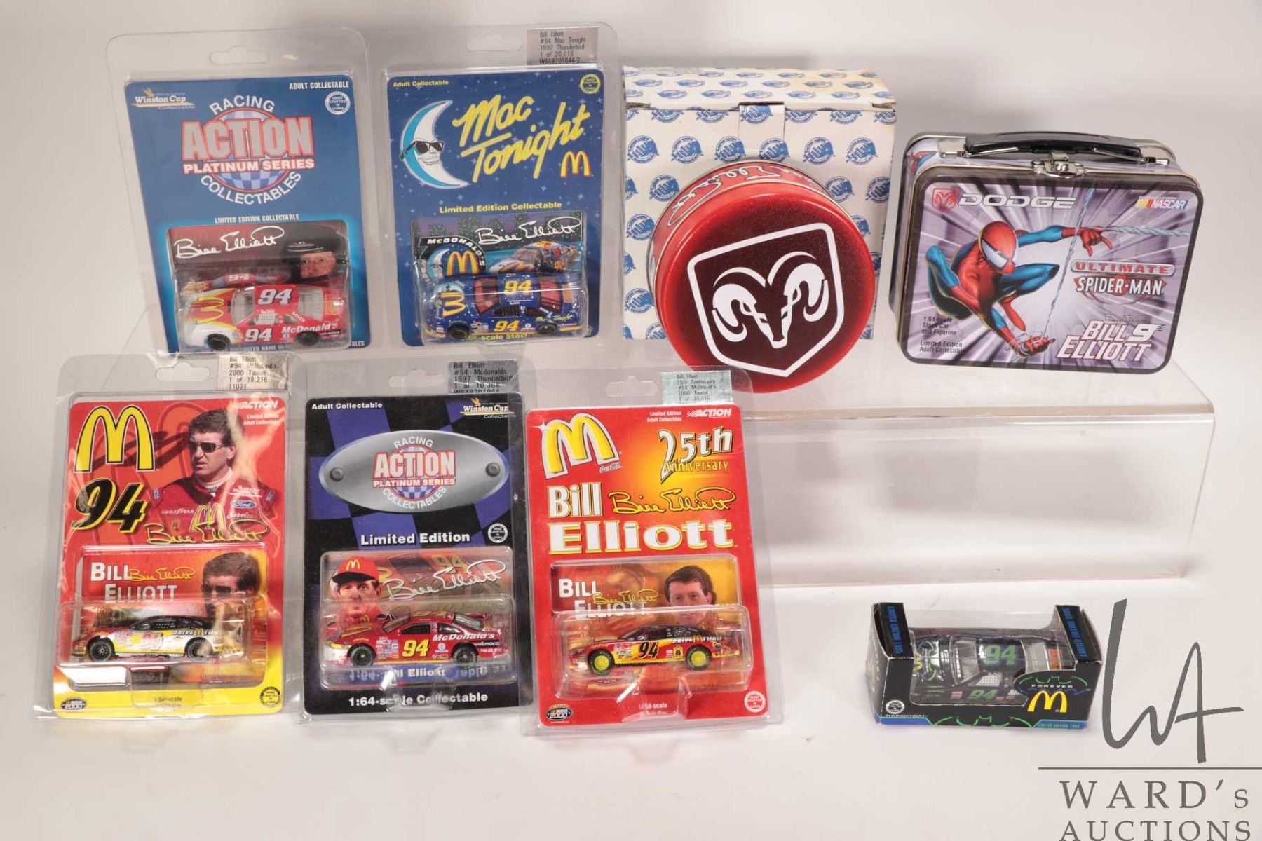 Eight limited edition 1:64th scale Action collectible Bill Elliot die cast cars including Spiderman and MacDonalds