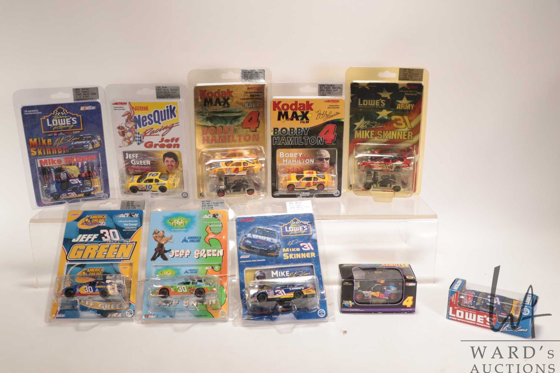 Ten assorted limited edition Action 1: 64 scale collectible cars including four Mike Skinner, three Bobby Hamilton and three Jeff Green