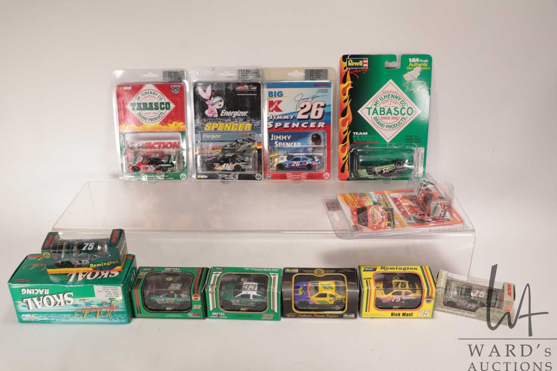 Twelve 1: 64 scale die cast collectible race cars including Ken Schrader, Jimmy Spencer, Todd Bodine and Rick Mast