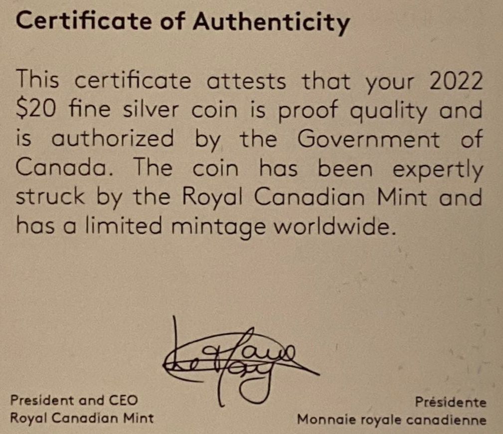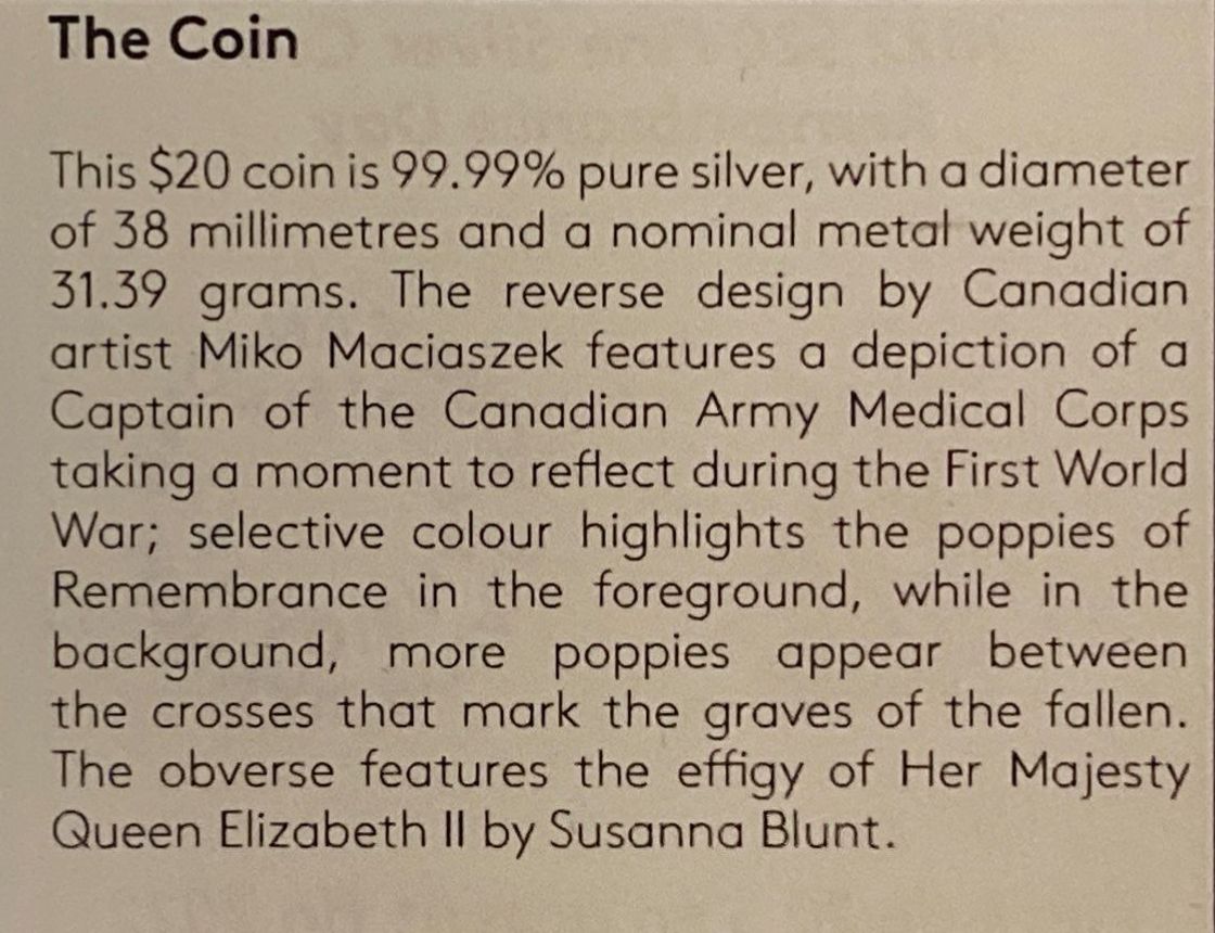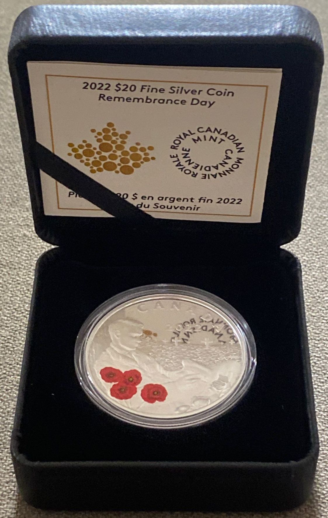 Lot 86 2022 $20 Remembrance Day Fine Silver Coin 31.39 Grams