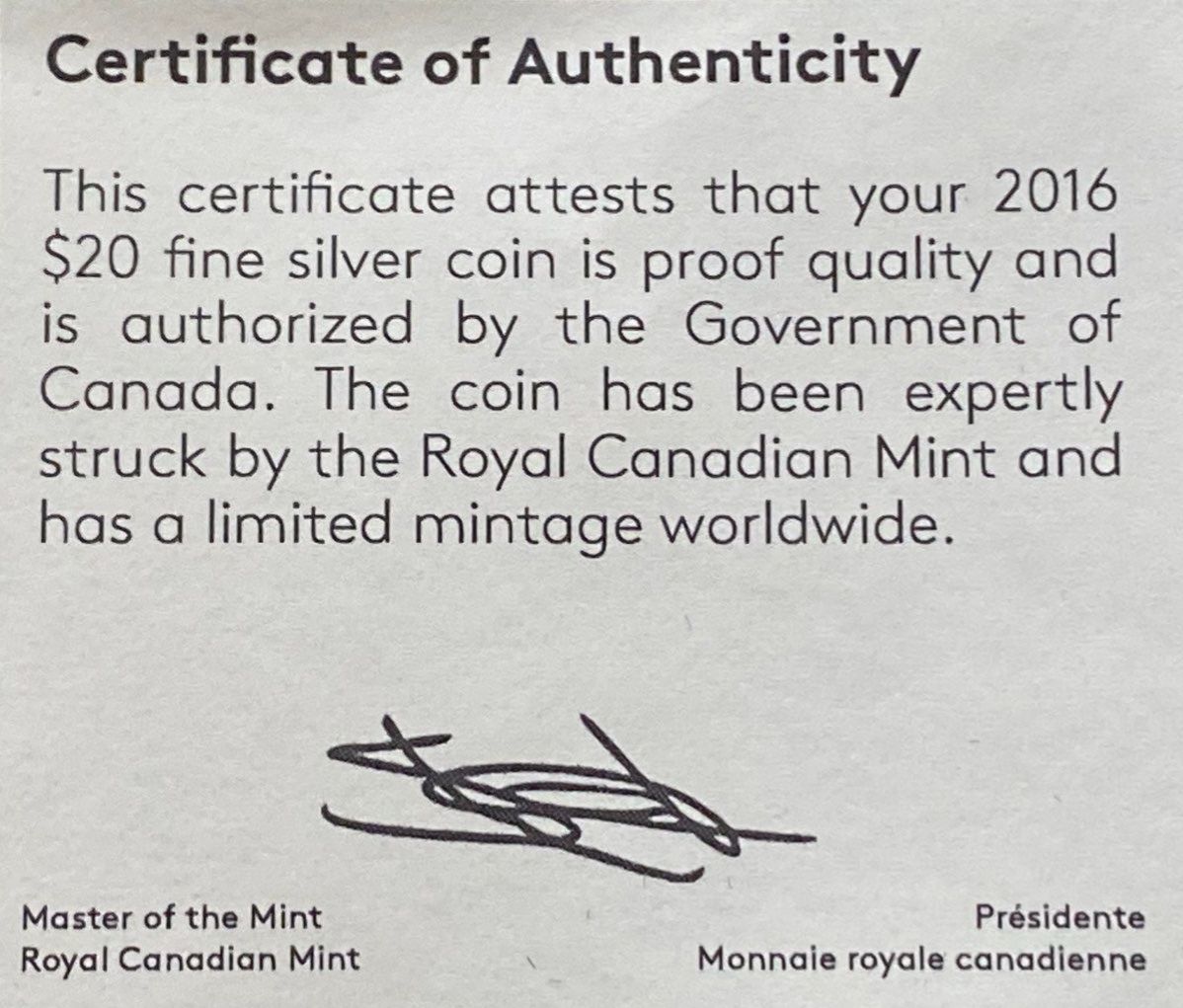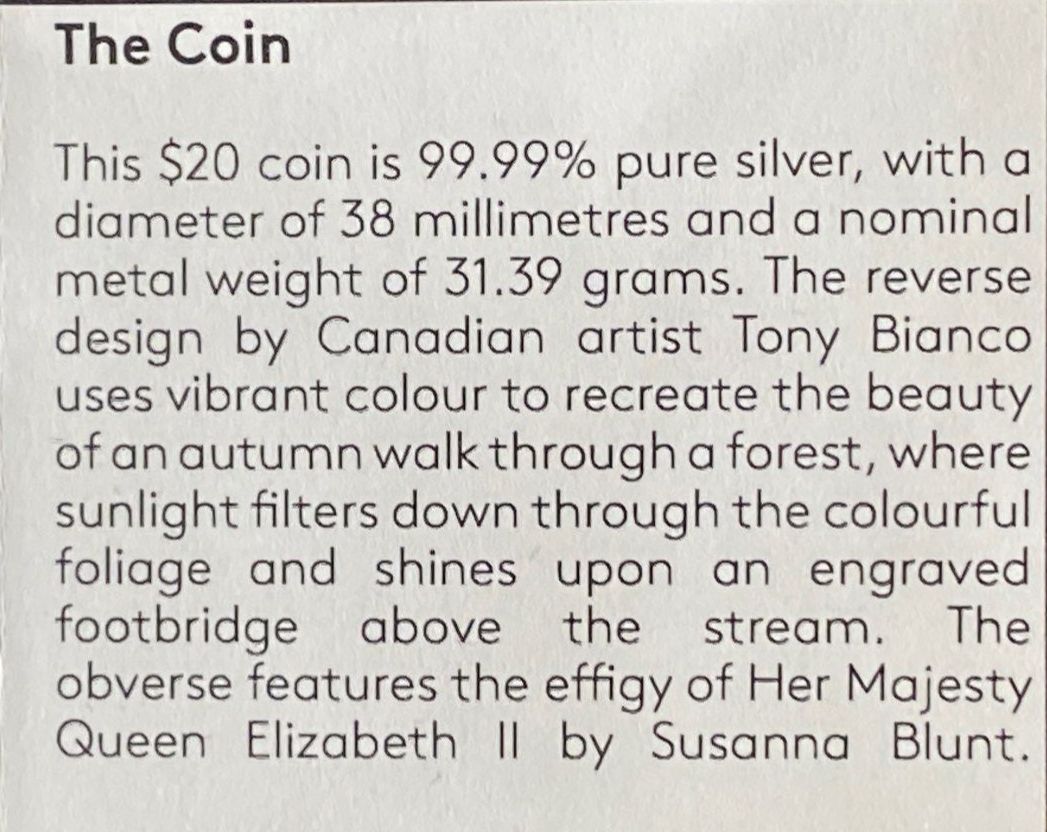 Lot 94 2016 $20 Autumn Tranquillity Fine Silver Coin 31.39 Grams
