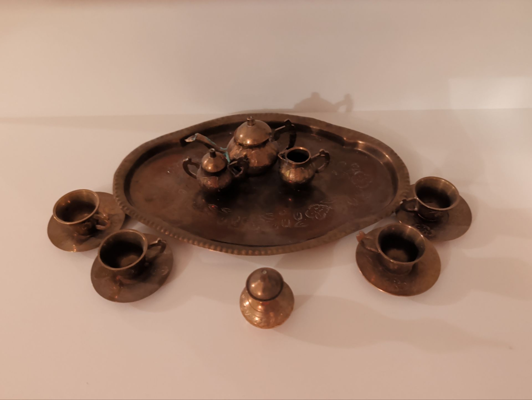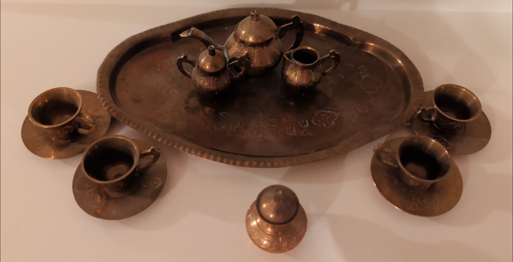 Lot 119 Miniature Brass 9 Piece Tea Set - 1'Tall