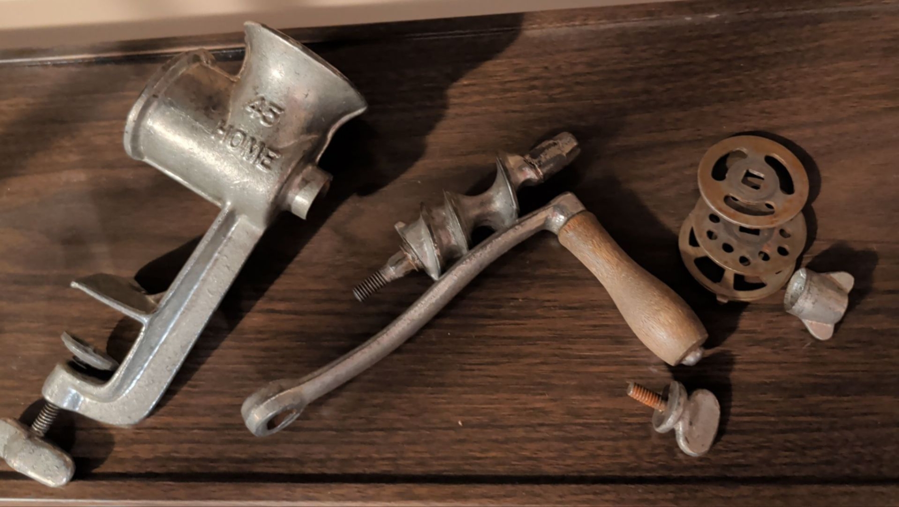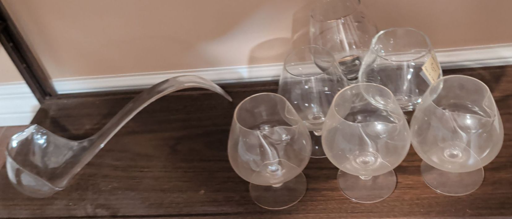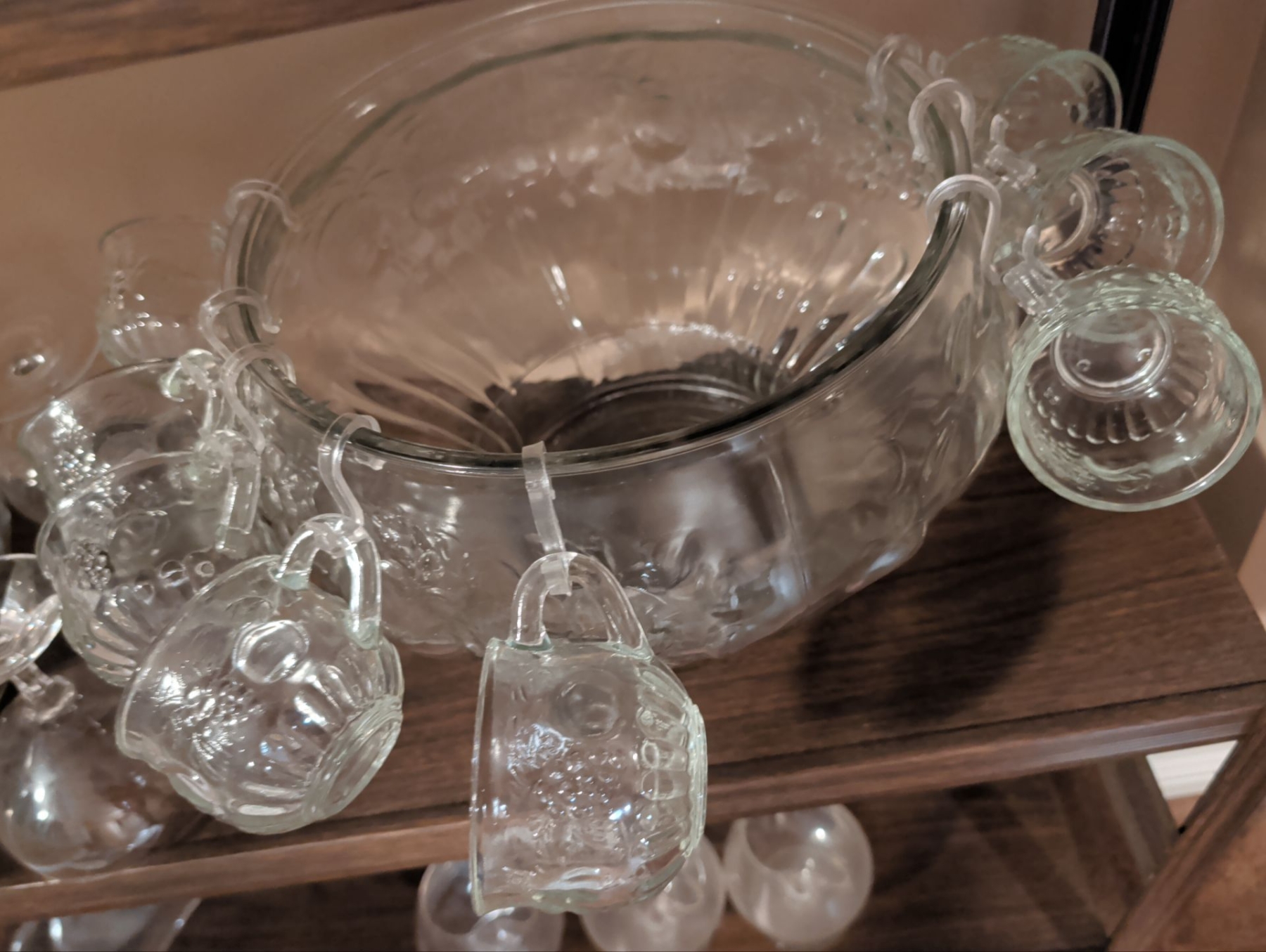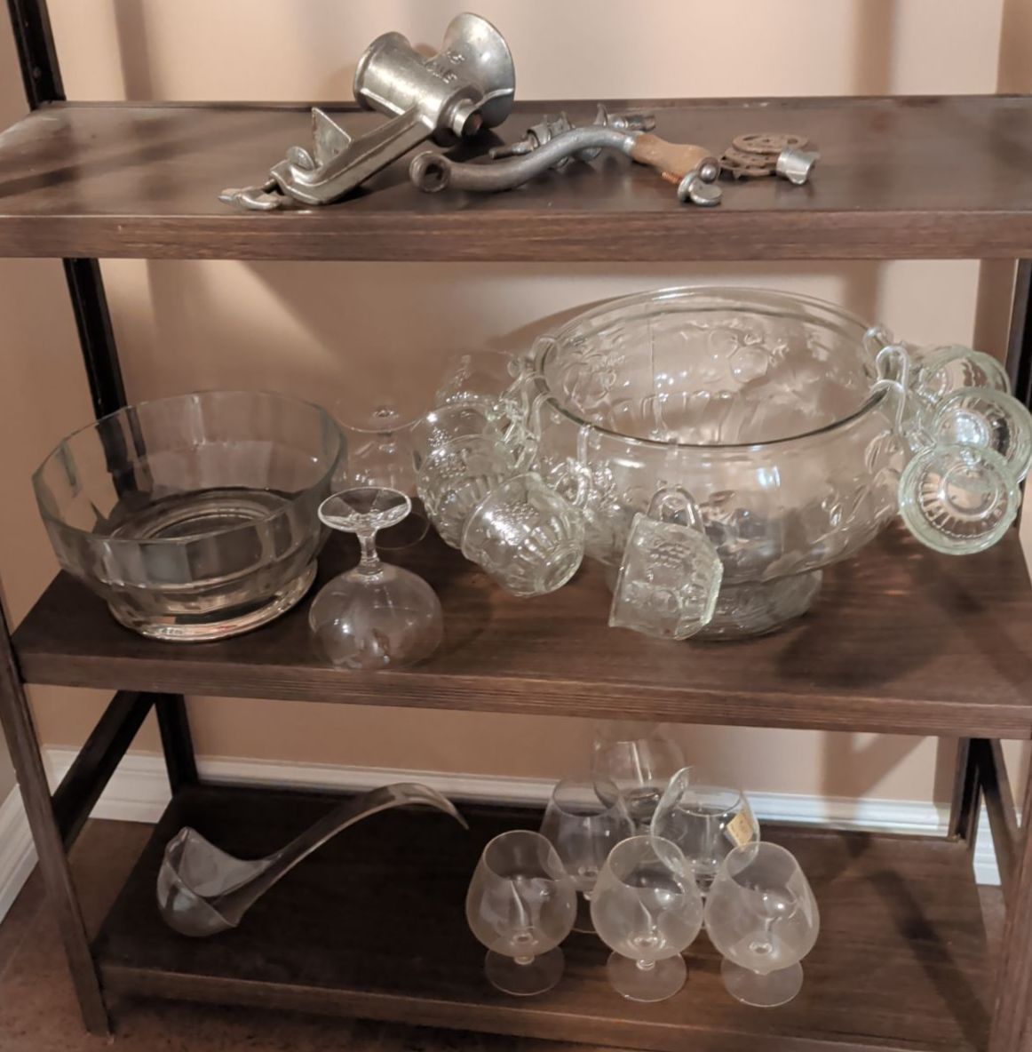 Lot 138 Antique Sausage Grinder w/ Crystal Punch Bowl Set Pinched Glass Snifters & more