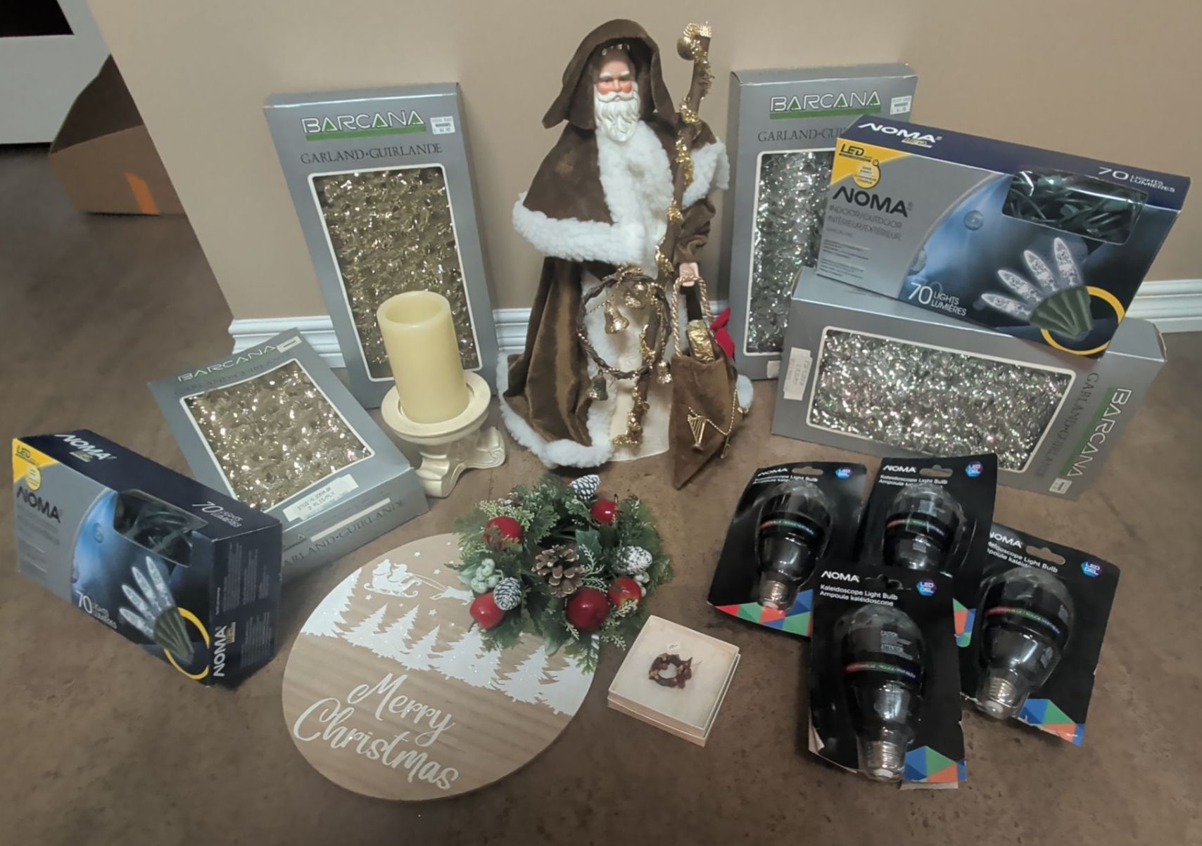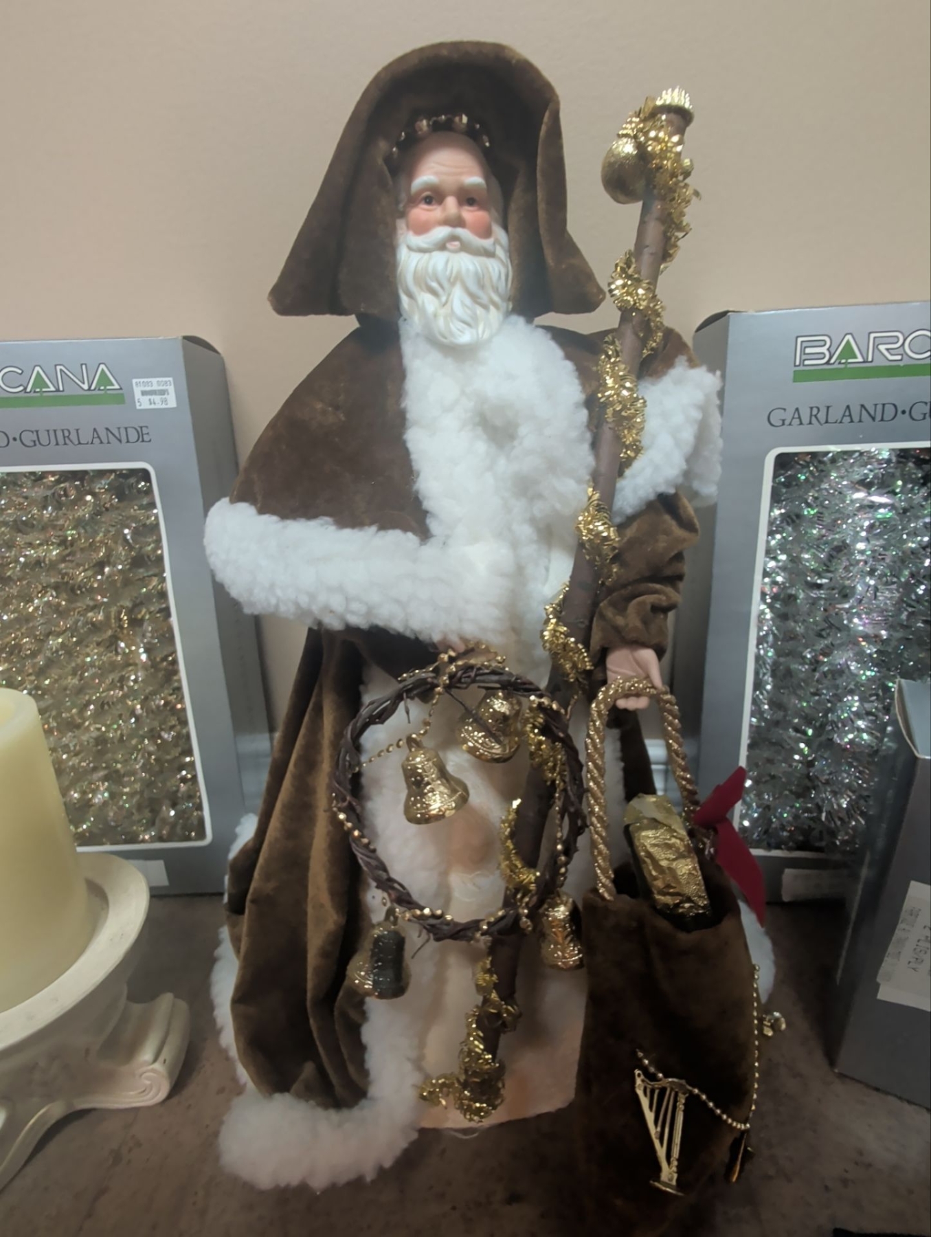Lot 152 Lux Christmas Collection - Boujie Santa In Olive OverCoat New Holiday Garland Holographic Bulbs