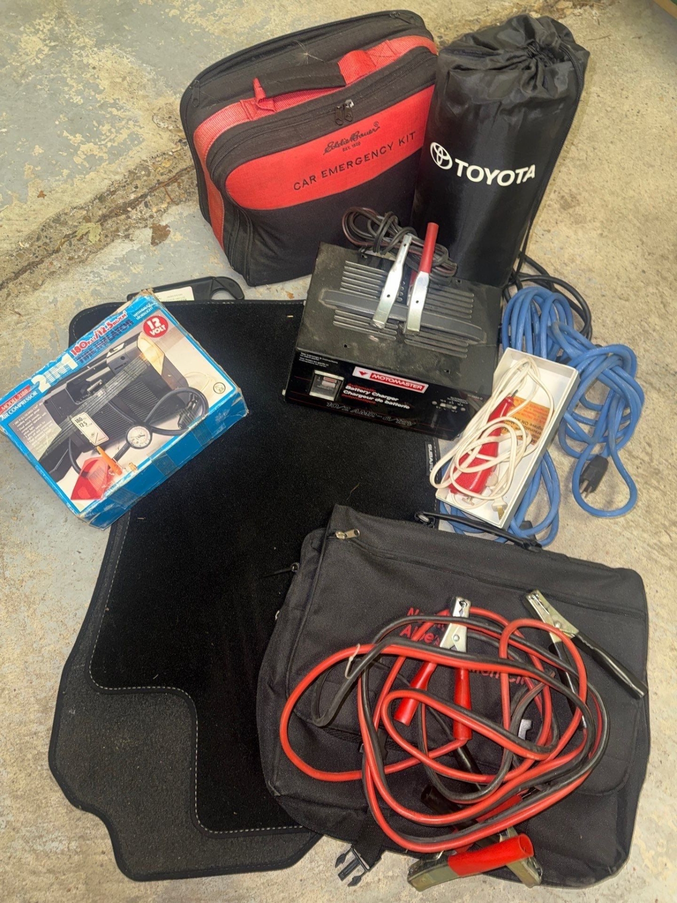 Lot 164 Car Owner's Essentials - Cables Roadside Emergency Kit Floor Matts & more