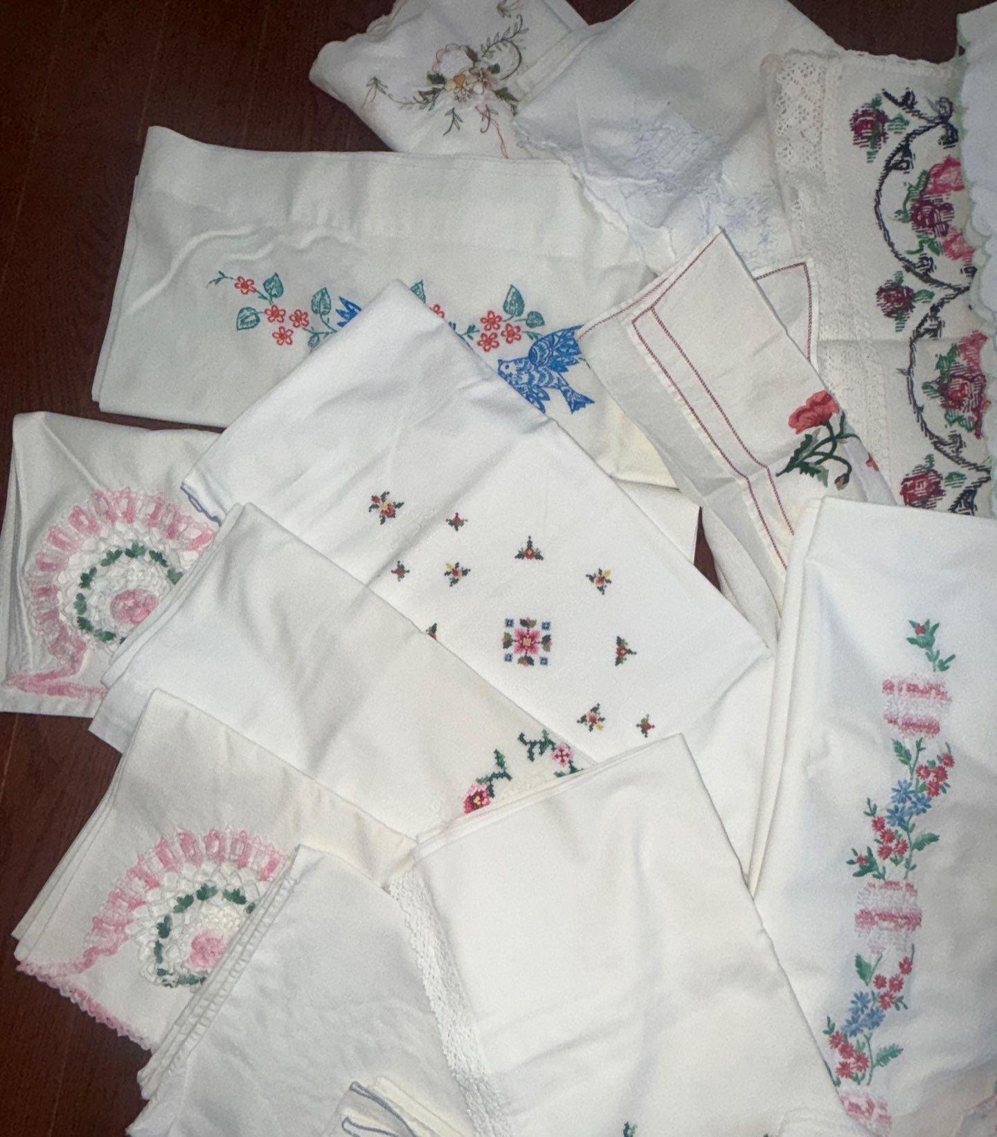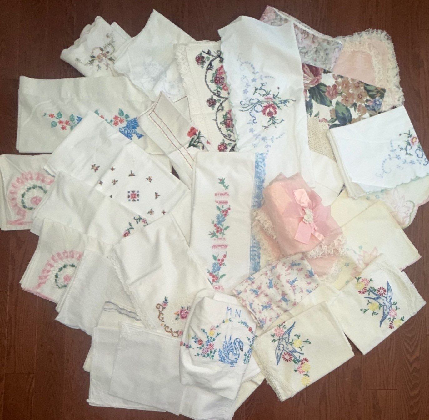 Lot 178 Vintage Linens w/ Top Notch Embroidery Petite Point & More