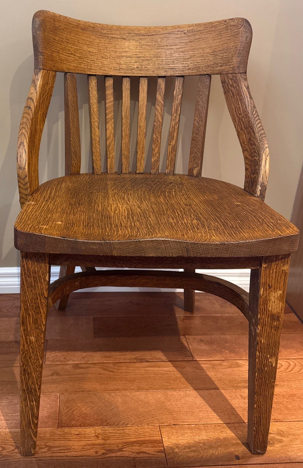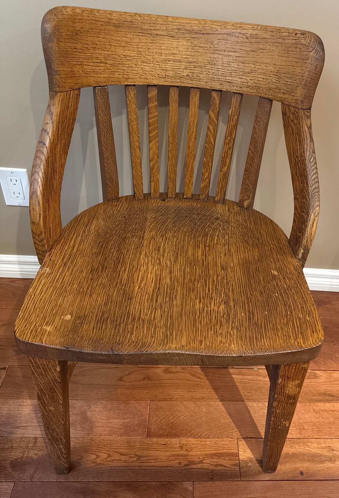 Lot 8 Antique Oak Slat Back Banker's Chair 30'Tall