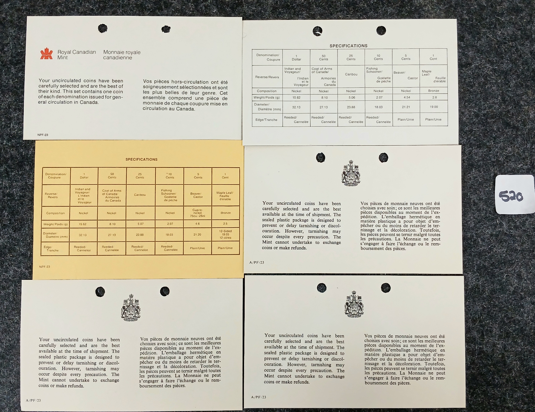 Lot 520 LOT OF 6 - 1970-1985 CDN UNCIRCULATED PROOF SETS