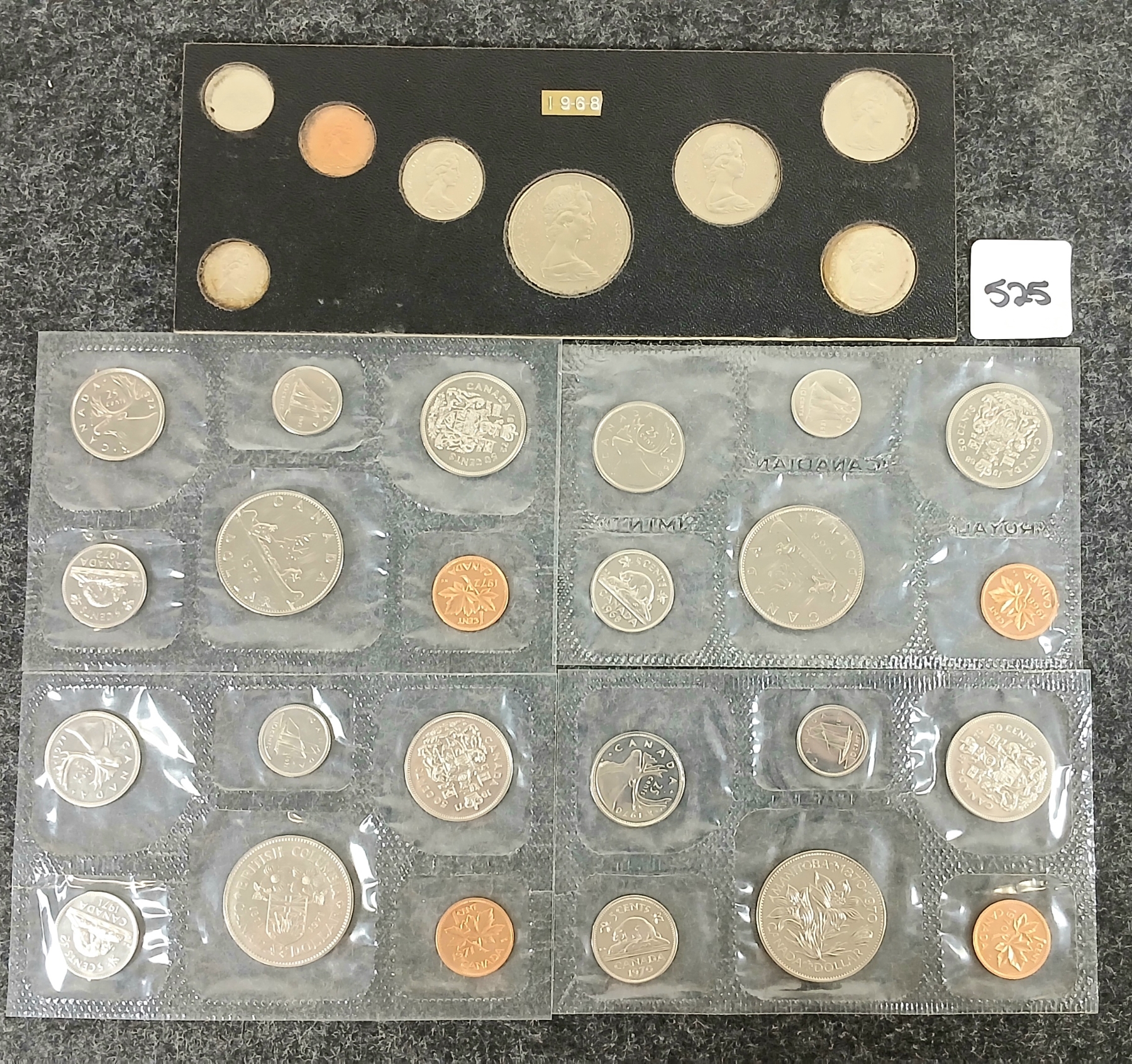 Lot 525 LOT OF 5 - 1968-1972 CDN UNCIRCULATED PROOF SETS
