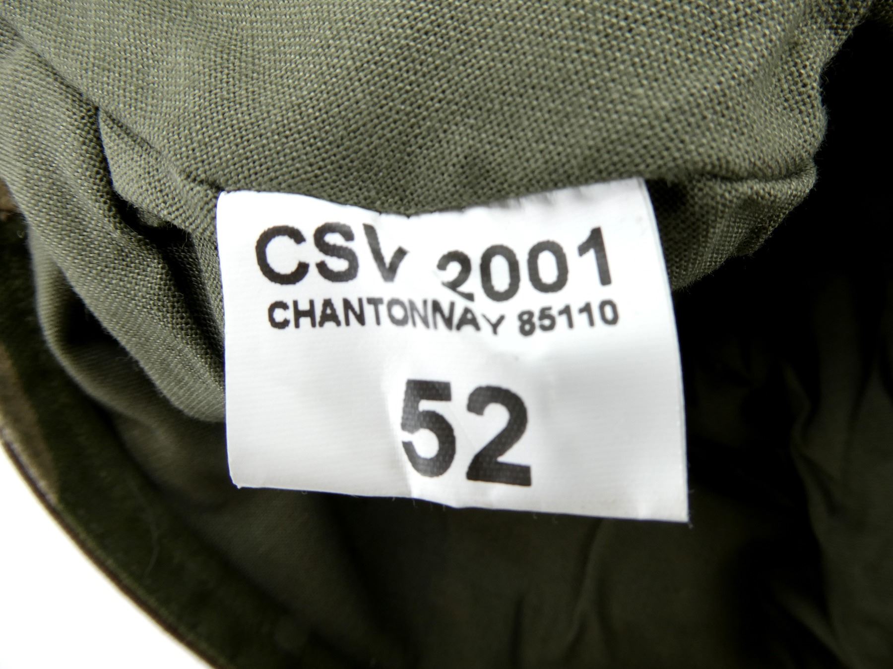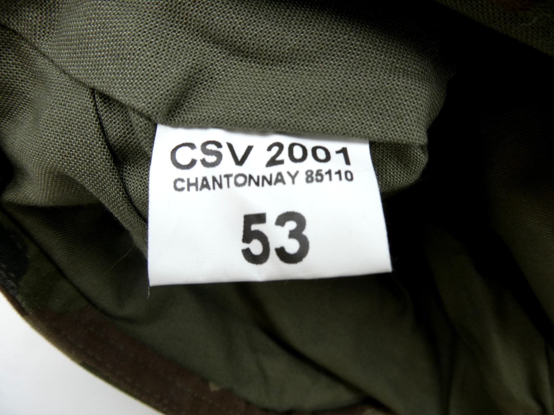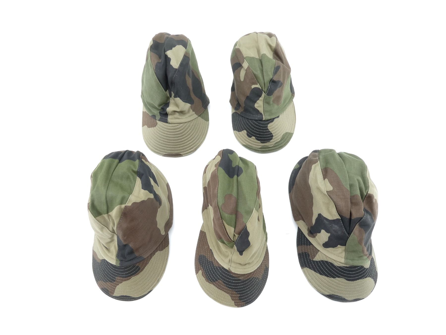 LOT INCLUDES; (5) CAMO FIELD CAPS, LABELS MARKED: "CSV 2001, CHATONNAY 85110, 52", "CVS 2001, CHATONNAY 85110, 53", 52 / 53 CM SIZING, ALL APPEAR NEW OLD STOCK. SEE PHOTOS.