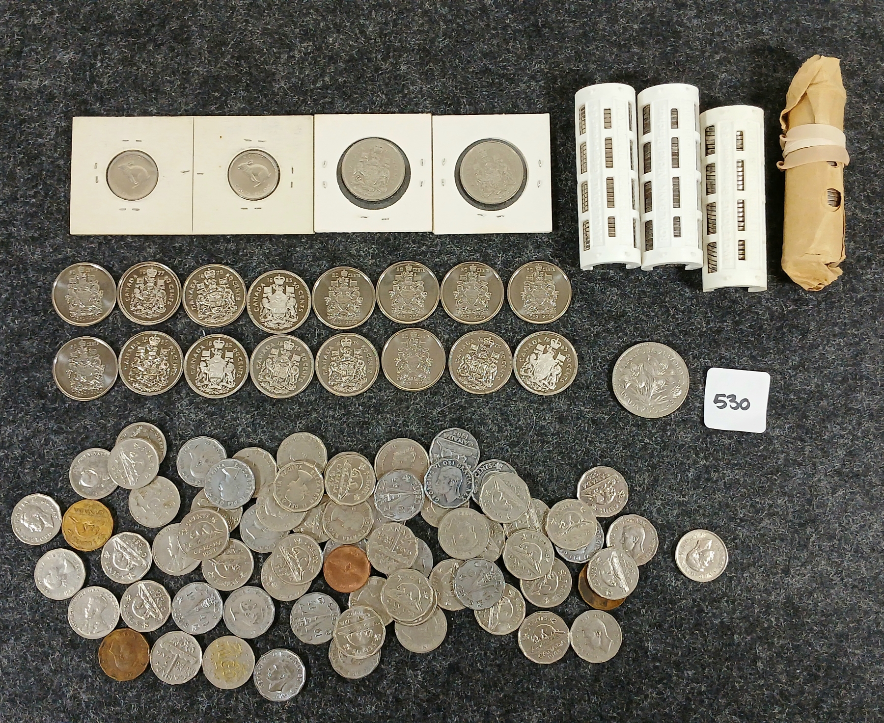 Lot 530 QTY OF MISC CDN COINS - INCL 1967 5 CENT, 1970 DOLLAR, ROLLS OF NICKELS, ETC