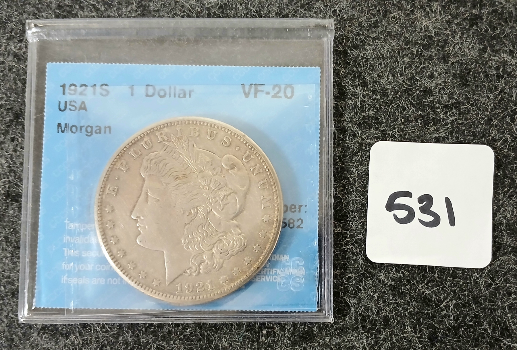 Lot 531 1921 US SILVER MORGAN DOLLAR - CCCS GRADED