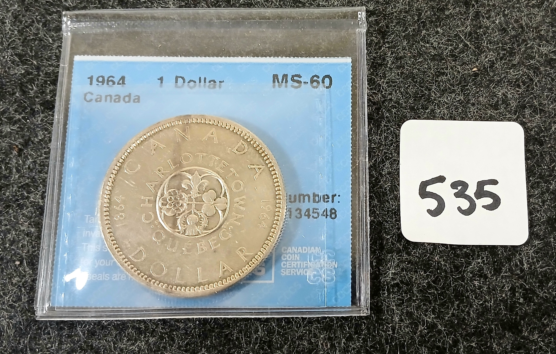 Lot 535 1964 CDN SILVER DOLLAR - CHARLOTTETOWN - CCCS GRADED