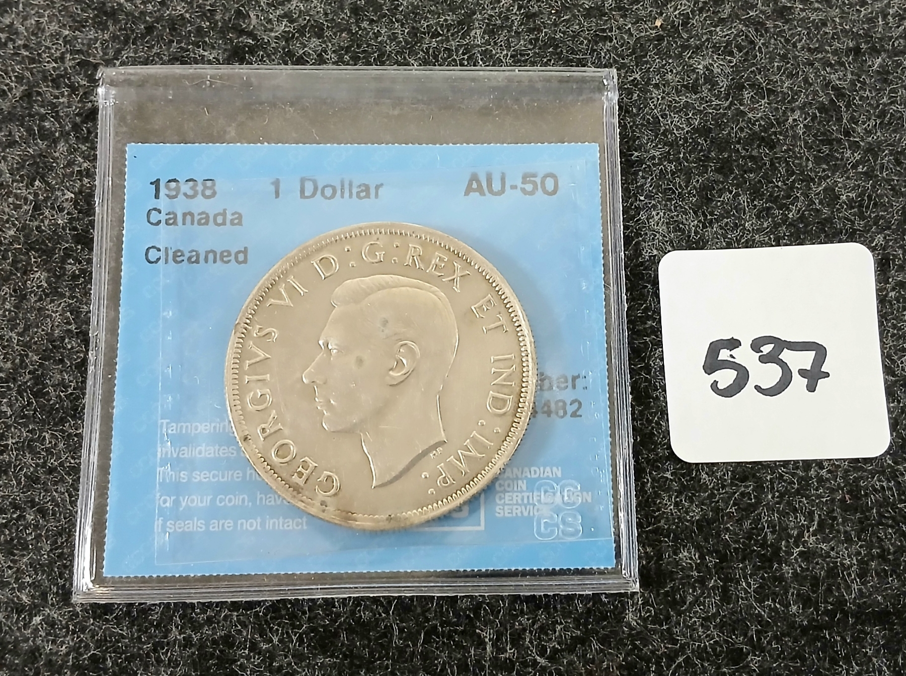 Lot 537 1938 CDN SILVER DOLLAR - VOYAGEUR - CCCS GRADED