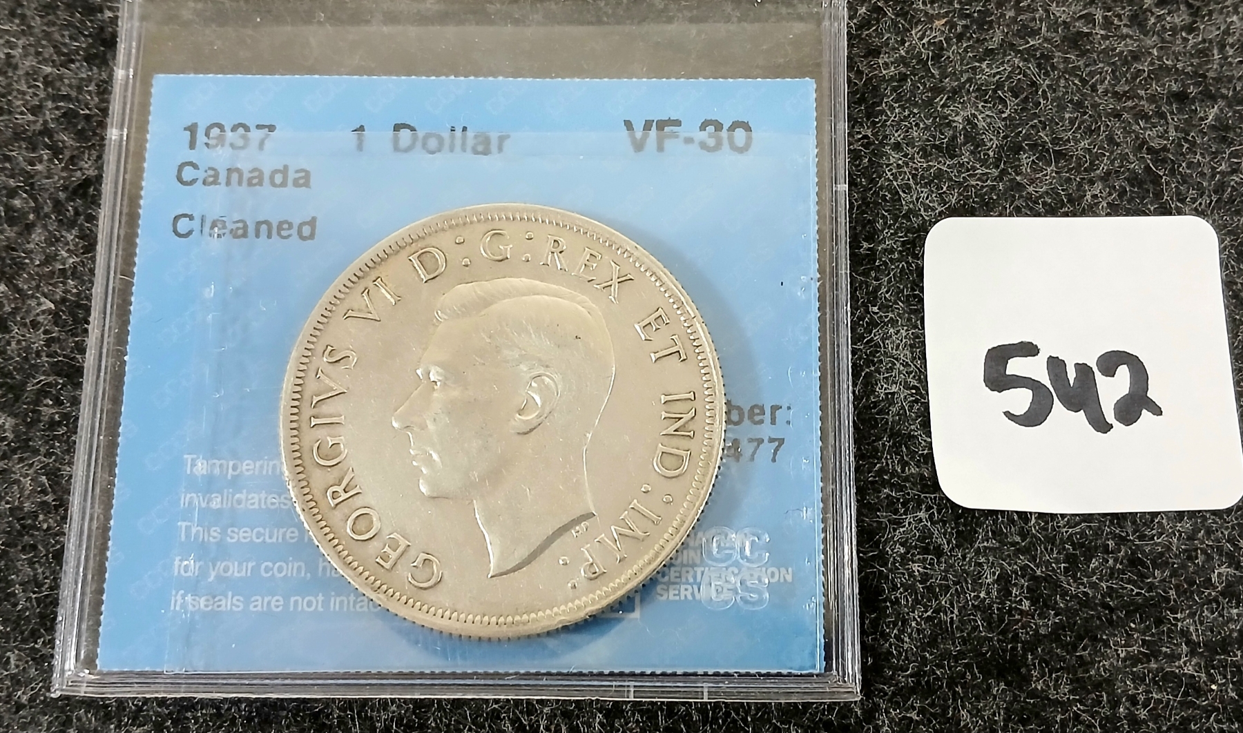 Lot 542 1937 CDN SILVER DOLLAR - VOYAGEUR - CCCS GRADED