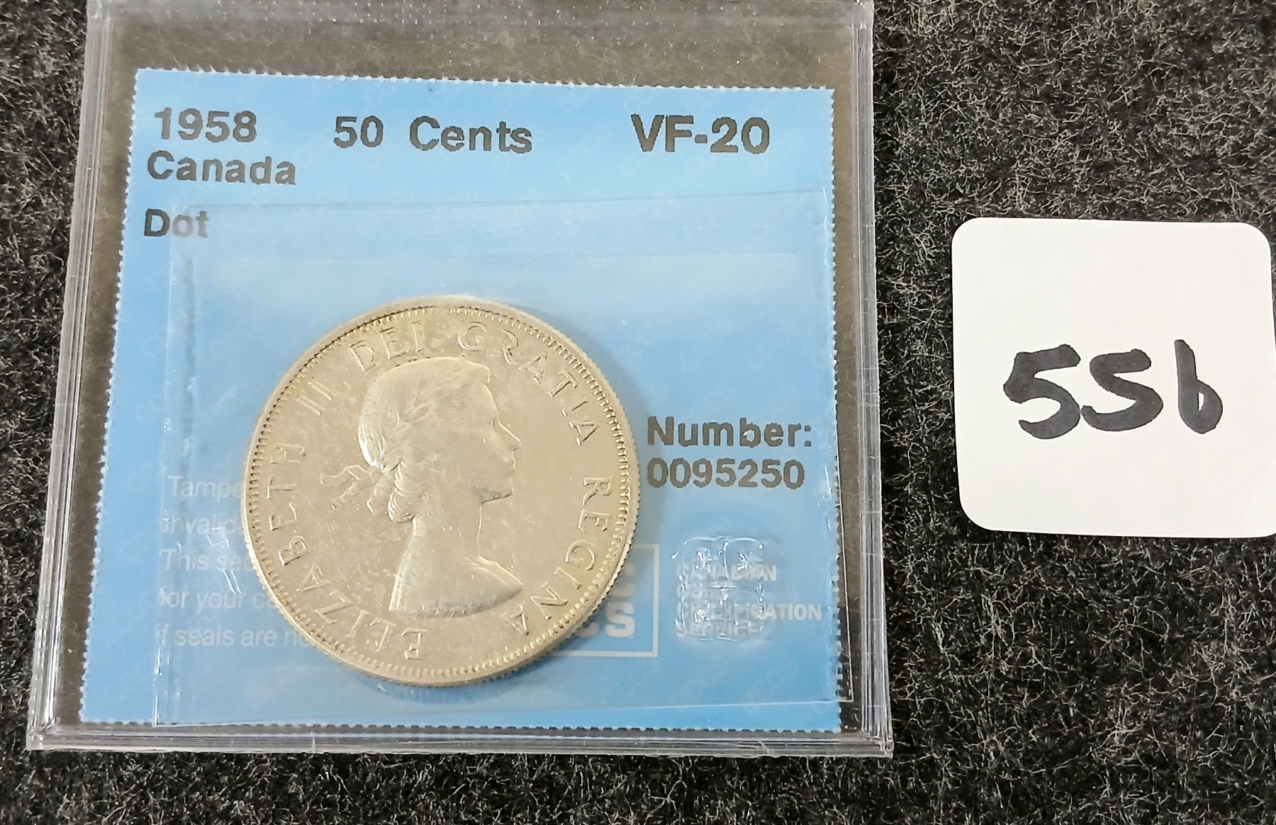 Lot 556 1958 CDN SILVER 50 CENT COIN - CCCS GRADED