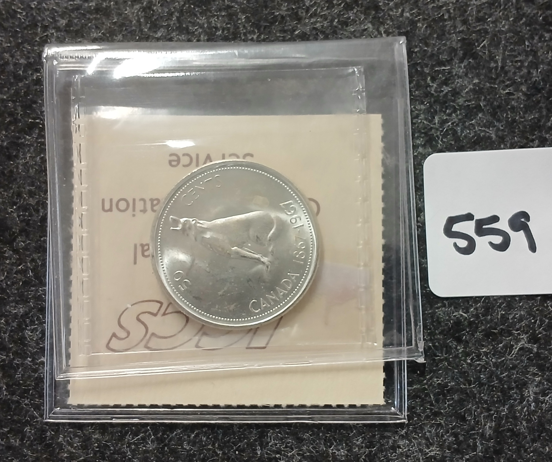 Lot 559 1967 CDN SILVER 50 CENT COIN - ICCS GRADED