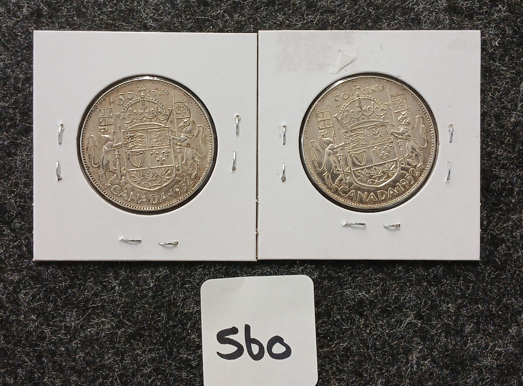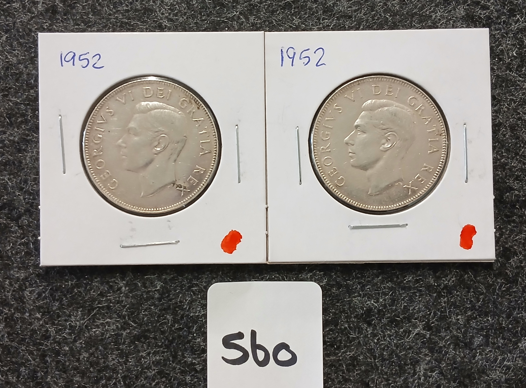 Lot 560 LOT OF 2 - 1952 CDN SILVER 50 CENT COINS